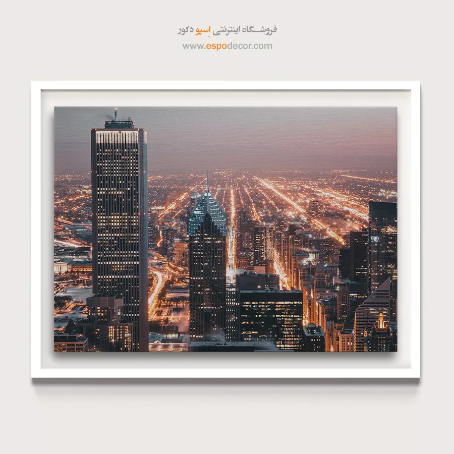- تابلو چاپی از نمای شب شهرها — نورپردازی خیابانها و skyline شبانه. مثال: شب های سیدنی، چراغ های شهر شیکاگو.