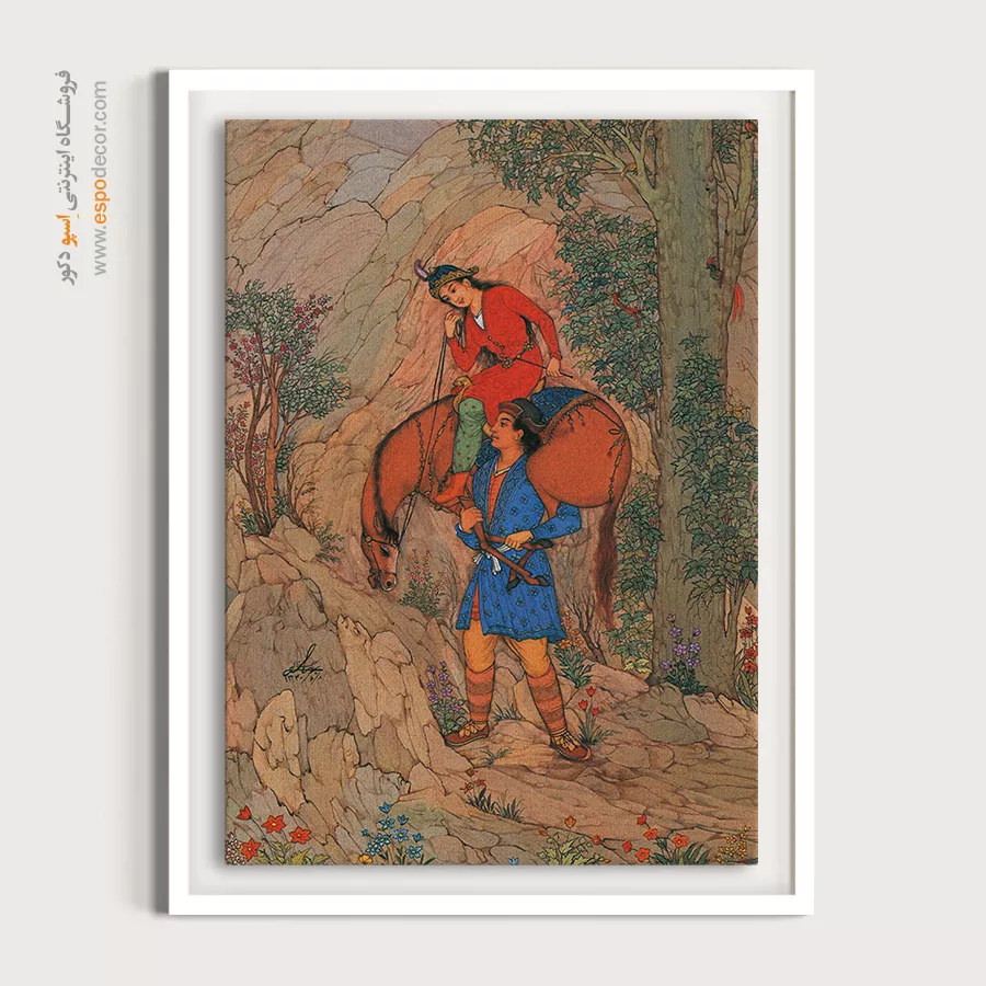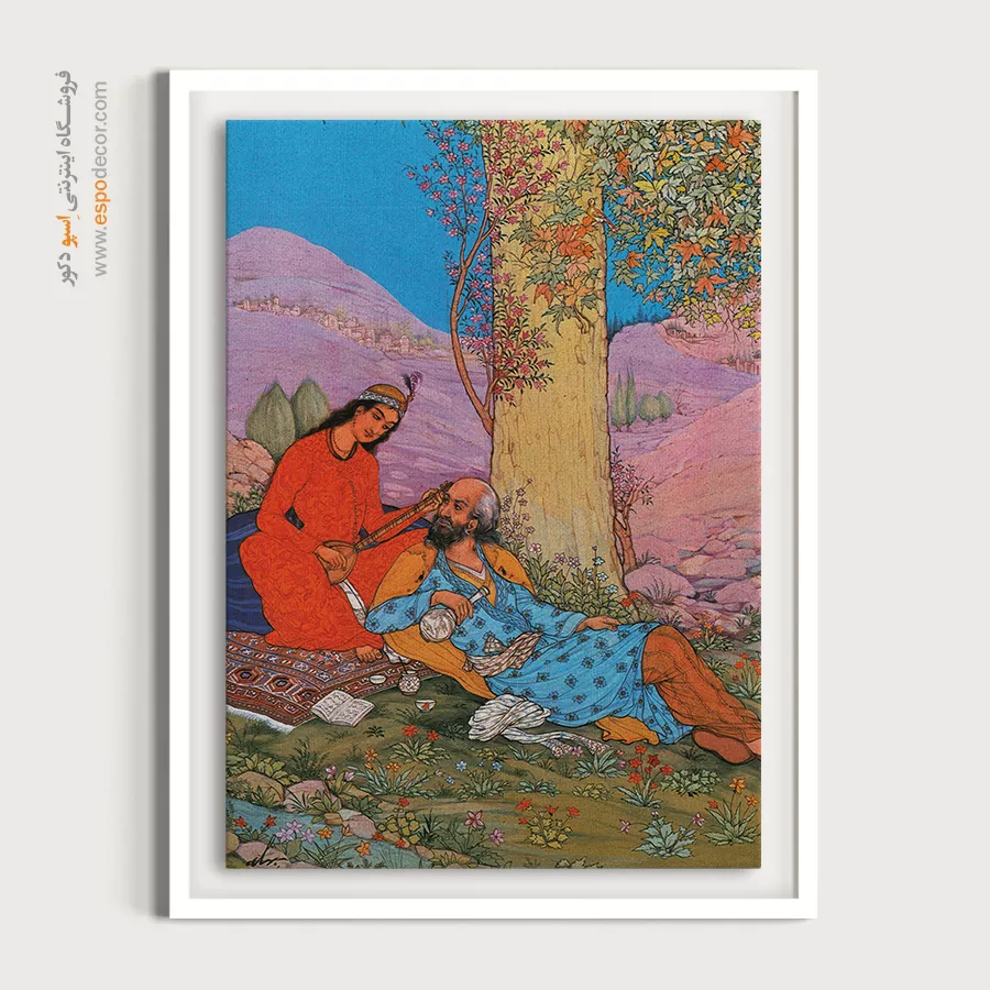 اگر روحیه‌ای لطیف دارید، تابلو مینیاتور عاشقانه اثر استاد حسین بهزاد بهترین انتخاب برای فضای خصوصی شماست. او داستان‌های نظامی و شاهنامه را به تصویر کشیده است.
