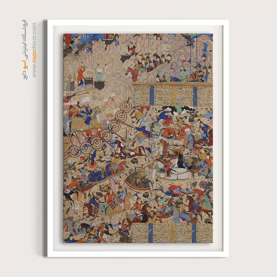 اگر به تاریخ علاقهمندید، صحنههایی مثل پیروزی صفویان بر روسها یا نبرد بین ایرانیان و تورانیان، میتوانند نقطه کانونی دکوراسیون شما باشند و ساعتها مهمانانتان را سرگرم تحلیل و تماشا کنند.