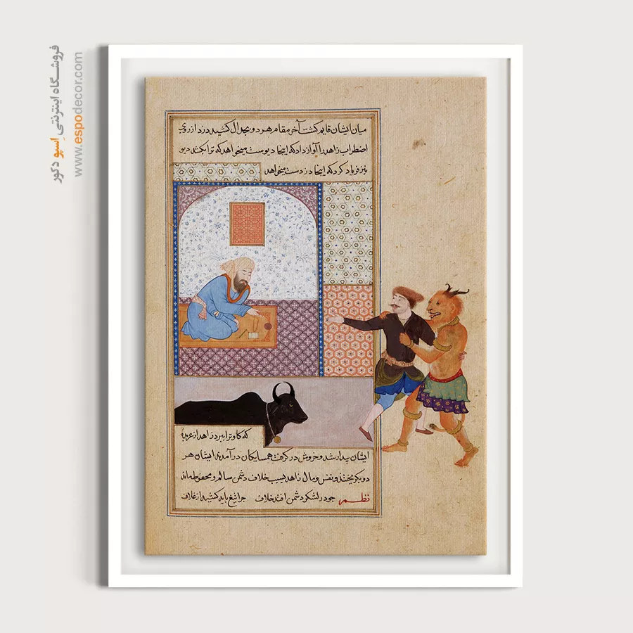 ورودی خانه و راهروها را فراموش نکنید. اینجا مکان مناسبی برای تابلوهای عمودی یا مجموعهای از تابلوهای کوچکتر است. مثلاً نصب تابلوی روایی حکایت زاهد و دیو و دزد در راهرو، باعث میشود عبور از آن مسیر مثل ورق زدن یک کتاب داستان باشد.