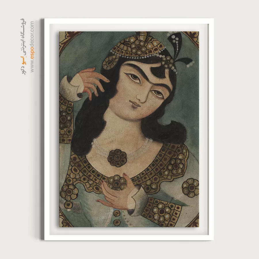 شاید جذابترین بخش برای دکوراسیونهای امروزی، تابلو نقاشی سبک قاجاری و کلاسیک باشد. چهرههای آرام، ابروهای پیوسته، لباسهای فاخر و نگاههای مستقیم به بیننده. تابلویی مثل ناصرالدین شاه جوان یا تصویر جوانی عمامه به سر، دقیقاً همان چیزی است که یک فضای “بوهیمین” (Bohemian) یا کلاسیک به آن نیاز دارد.