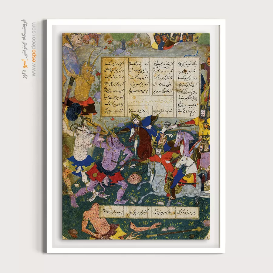 ایرانیها عاشق قصههای پهلوانی هستند. تابلوهایی که صحنههای نبرد شاهنامه را نشان میدهند، ابهت خاصی به فضا میدهند. تصور کنید روی دیوار اصلی پذیراییتان، تابلوی باشکوه نبرد هوشنگ با دیو سیاه یا صحنهی دراماتیک کشتن دیو سیاه توسط هوشنگ نصب شده باشد. اینها فقط نقاشی نیستند؛ انرژی خالصاند.