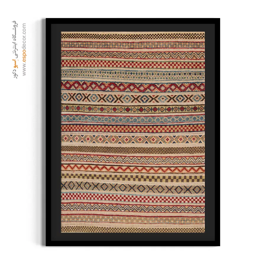 تابلوی گلیم افغان، فراتر از یک عنصر تزئینی ساده است؛ این اثر هنری، داستانی از فرهنگ و سنت‌های کهن افغانستان را روایت می‌کند. با الهام از نقوش هندسی و رنگ‌های گرم گلیم‌های دست‌بافت افغان، این تابلو حال و هوایی متفاوت به دکوراسیون شما می‌بخشد و جلوه‌ای منحصر‌به‌فرد ایجاد می‌کند. رنگ‌های به‌کاررفته در این تابلو، عموماً از پالت‌های خاکی، آجری، لاجوردی و زرشکی انتخاب شده‌اند که بافت طبیعی گلیم را به‌خوبی بازتاب می‌دهند. این طیف رنگی به‌راحتی با سبک‌های مختلف دکوراسیون داخلی مانند بوهو، مینیمال، سنتی یا حتی صنعتی هماهنگ می‌شود. طرح گلیم در این تابلو با دقت و وضوح بالا چاپ شده بر روی متریالی با کیفیت بوم. استفاده از قاب‌های مدرن یا کلاسیک بنا به انتخاب شما، امکان هماهنگ‌سازی تابلو با فضای داخلی را فراهم می‌کند. کیفیت چاپ و مواد اولیه تضمین‌کننده دوام رنگ و ماندگاری بالای تصویر است. این تابلو نه تنها یک انتخاب زیباشناسانه برای فضای نشیمن، اتاق خواب یا محل کار است، بلکه می‌تواند به‌عنوان هدیه‌ای خاص برای علاقه‌مندان به هنرهای شرقی نیز در نظر گرفته شود. تابلوی گلیم افغان، پلی میان گذشته و حال است؛ جایی که اصالت با خلاقیت معاصر گره خورده است. اگر به‌دنبال تزئین فضایی گرم، هنری و متفاوت هستید، این تابلو می‌تواند انتخابی هوشمندانه باشد. هر نگاه به آن، بیننده را به سفری بصری در دل سنت‌های رنگارنگ آسیای میانه می‌برد. با انتخاب این تابلو، بخشی از روح فرهنگی گلیم‌های افغان را به فضای زندگی خود دعوت کنید.