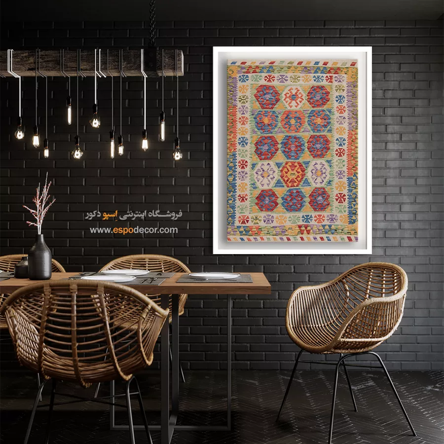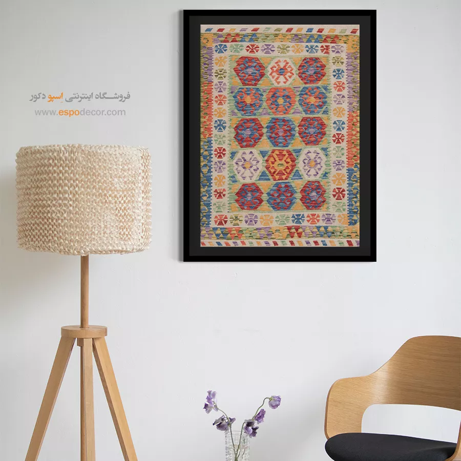 تابلوی دکوراتیو با طرح گلیم افغان، تلفیقی بینظیر از هنر اصیل شرقی و طراحی مدرن است. این تابلو با الهام از نقشونگارهای سنتی گلیمهای افغانستان، حس گرما، صمیمیت و اصالت را به فضای خانه یا محل کار شما میآورد و انتخابی منحصربهفرد برای دوستداران فرهنگ و هنر شرقی است.