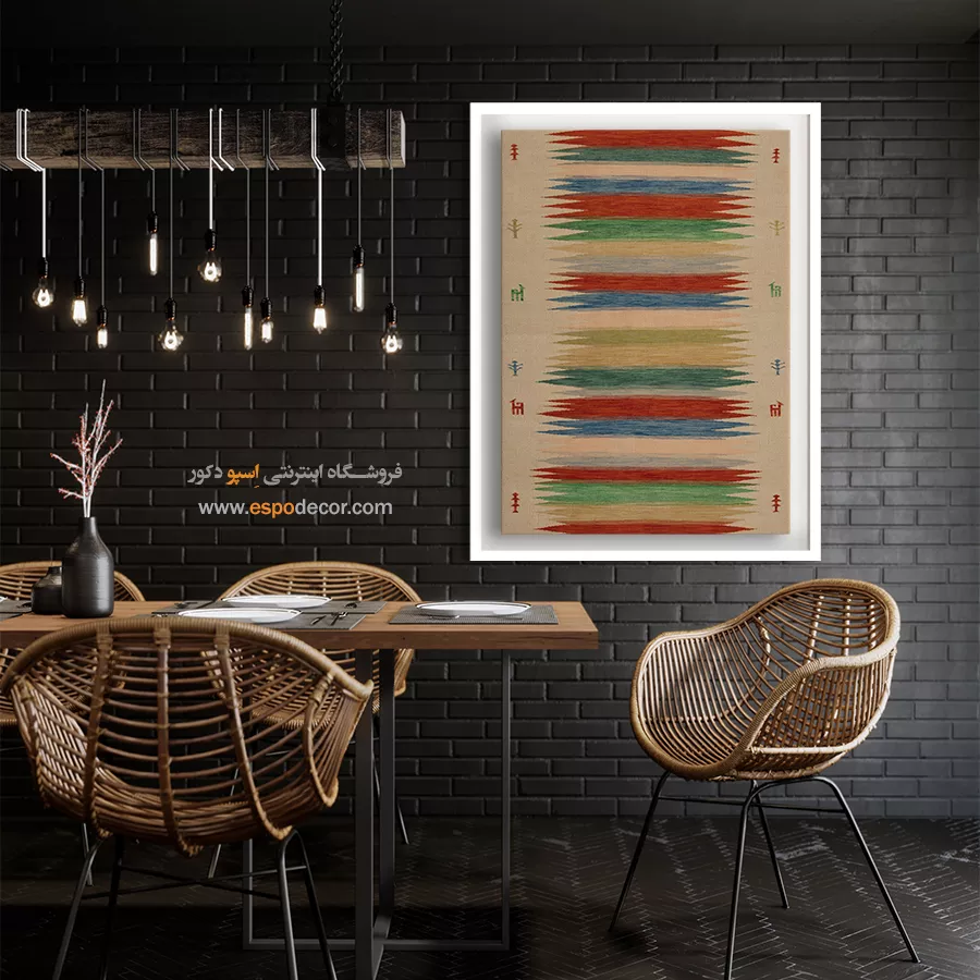 تابلوی دکوراتیو با طرح گلیم افغان، تلفیقی بینظیر از هنر اصیل شرقی و طراحی مدرن است. این تابلو با الهام از نقشونگارهای سنتی گلیمهای افغانستان، حس گرما، صمیمیت و اصالت را به فضای خانه یا محل کار شما میآورد و انتخابی منحصربهفرد برای دوستداران فرهنگ و هنر شرقی است.