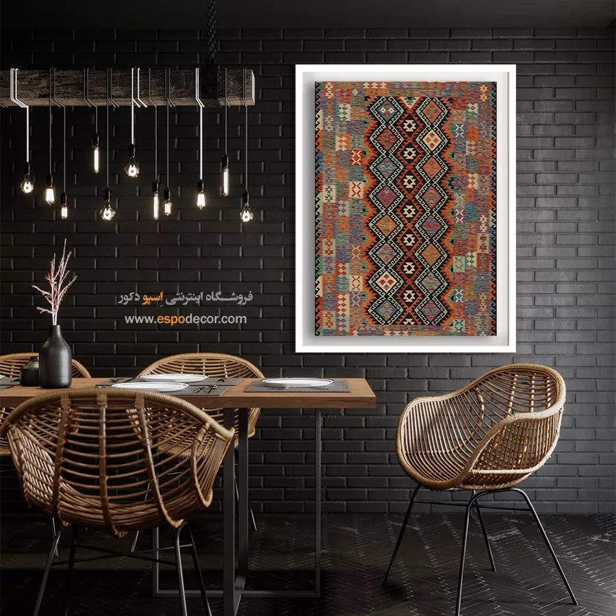 تابلوی دکوراتیو با طرح گلیم افغان، تلفیقی بینظیر از هنر اصیل شرقی و طراحی مدرن است. این تابلو با الهام از نقشونگارهای سنتی گلیمهای افغانستان، حس گرما، صمیمیت و اصالت را به فضای خانه یا محل کار شما میآورد و انتخابی منحصربهفرد برای دوستداران فرهنگ و هنر شرقی است.