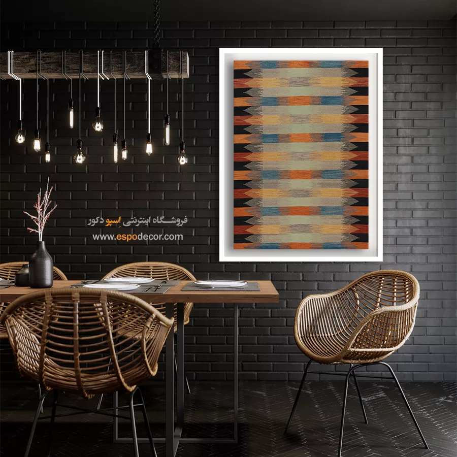 تابلوی دکوراتیو با طرح گلیم افغان، تلفیقی بینظیر از هنر اصیل شرقی و طراحی مدرن است. این تابلو با الهام از نقشونگارهای سنتی گلیمهای افغانستان، حس گرما، صمیمیت و اصالت را به فضای خانه یا محل کار شما میآورد و انتخابی منحصربهفرد برای دوستداران فرهنگ و هنر شرقی است.