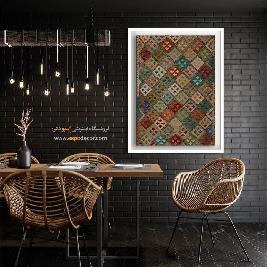 تابلوی گلیم افغان، فراتر از یک عنصر تزئینی ساده است؛ این اثر هنری، داستانی از فرهنگ و سنت‌های کهن افغانستان را روایت می‌کند. با الهام از نقوش هندسی و رنگ‌های گرم گلیم‌های دست‌بافت افغان، این تابلو حال و هوایی متفاوت به دکوراسیون شما می‌بخشد و جلوه‌ای منحصر‌به‌فرد ایجاد می‌کند. رنگ‌های به‌کاررفته در این تابلو، عموماً از پالت‌های خاکی، آجری، لاجوردی و زرشکی انتخاب شده‌اند که بافت طبیعی گلیم را به‌خوبی بازتاب می‌دهند. این طیف رنگی به‌راحتی با سبک‌های مختلف دکوراسیون داخلی مانند بوهو، مینیمال، سنتی یا حتی صنعتی هماهنگ می‌شود. طرح گلیم در این تابلو با دقت و وضوح بالا چاپ شده بر روی متریالی با کیفیت بوم. استفاده از قاب‌های مدرن یا کلاسیک بنا به انتخاب شما، امکان هماهنگ‌سازی تابلو با فضای داخلی را فراهم می‌کند. کیفیت چاپ و مواد اولیه تضمین‌کننده دوام رنگ و ماندگاری بالای تصویر است. این تابلو نه تنها یک انتخاب زیباشناسانه برای فضای نشیمن، اتاق خواب یا محل کار است، بلکه می‌تواند به‌عنوان هدیه‌ای خاص برای علاقه‌مندان به هنرهای شرقی نیز در نظر گرفته شود. تابلوی گلیم افغان، پلی میان گذشته و حال است؛ جایی که اصالت با خلاقیت معاصر گره خورده است. اگر به‌دنبال تزئین فضایی گرم، هنری و متفاوت هستید، این تابلو می‌تواند انتخابی هوشمندانه باشد. هر نگاه به آن، بیننده را به سفری بصری در دل سنت‌های رنگارنگ آسیای میانه می‌برد. با انتخاب این تابلو، بخشی از روح فرهنگی گلیم‌های افغان را به فضای زندگی خود دعوت کنید.