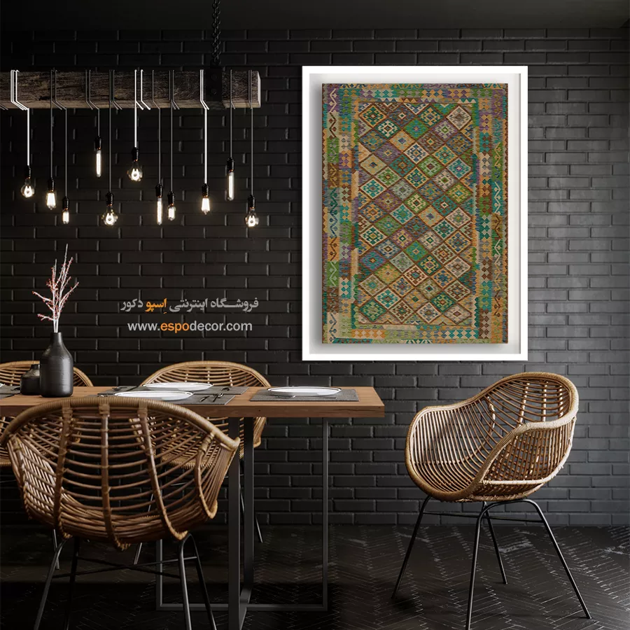 تابلوی دکوراتیو با طرح گلیم افغان، تلفیقی بینظیر از هنر اصیل شرقی و طراحی مدرن است. این تابلو با الهام از نقشونگارهای سنتی گلیمهای افغانستان، حس گرما، صمیمیت و اصالت را به فضای خانه یا محل کار شما میآورد و انتخابی منحصربهفرد برای دوستداران فرهنگ و هنر شرقی است.