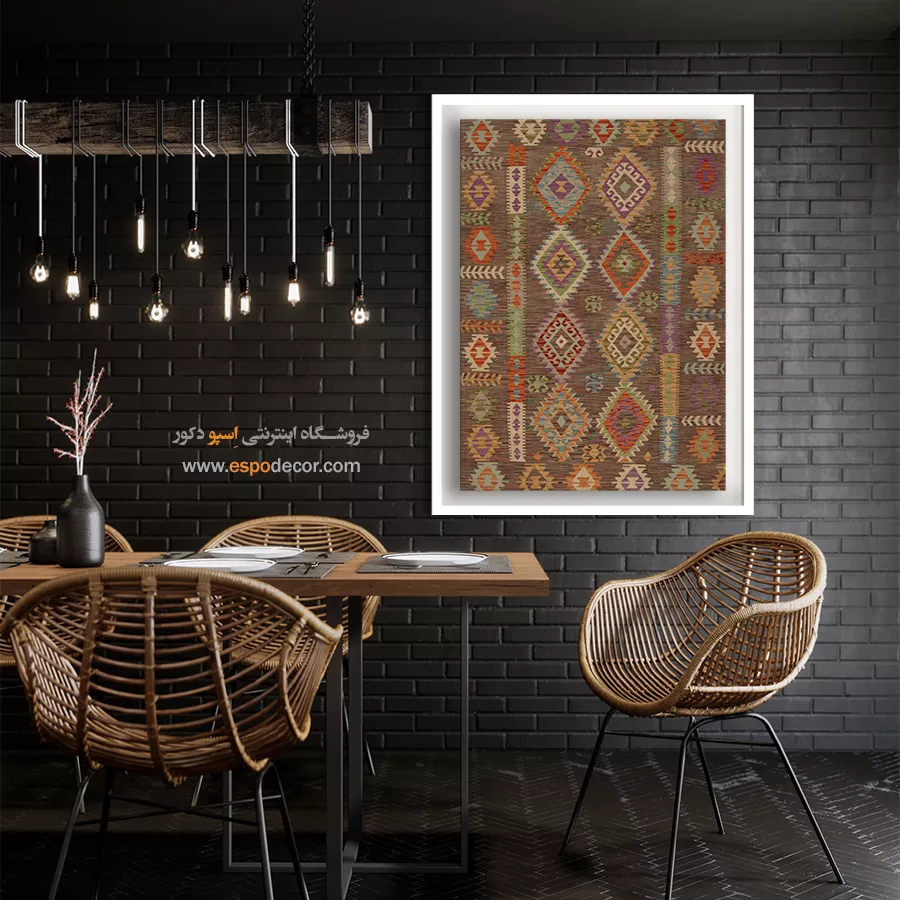 تابلوی گلیم افغان، فراتر از یک عنصر تزئینی ساده است؛ این اثر هنری، داستانی از فرهنگ و سنت‌های کهن افغانستان را روایت می‌کند. با الهام از نقوش هندسی و رنگ‌های گرم گلیم‌های دست‌بافت افغان، این تابلو حال و هوایی متفاوت به دکوراسیون شما می‌بخشد و جلوه‌ای منحصر‌به‌فرد ایجاد می‌کند. رنگ‌های به‌کاررفته در این تابلو، عموماً از پالت‌های خاکی، آجری، لاجوردی و زرشکی انتخاب شده‌اند که بافت طبیعی گلیم را به‌خوبی بازتاب می‌دهند. این طیف رنگی به‌راحتی با سبک‌های مختلف دکوراسیون داخلی مانند بوهو، مینیمال، سنتی یا حتی صنعتی هماهنگ می‌شود. طرح گلیم در این تابلو با دقت و وضوح بالا چاپ شده بر روی متریالی با کیفیت بوم. استفاده از قاب‌های مدرن یا کلاسیک بنا به انتخاب شما، امکان هماهنگ‌سازی تابلو با فضای داخلی را فراهم می‌کند. کیفیت چاپ و مواد اولیه تضمین‌کننده دوام رنگ و ماندگاری بالای تصویر است. این تابلو نه تنها یک انتخاب زیباشناسانه برای فضای نشیمن، اتاق خواب یا محل کار است، بلکه می‌تواند به‌عنوان هدیه‌ای خاص برای علاقه‌مندان به هنرهای شرقی نیز در نظر گرفته شود. تابلوی گلیم افغان، پلی میان گذشته و حال است؛ جایی که اصالت با خلاقیت معاصر گره خورده است. اگر به‌دنبال تزئین فضایی گرم، هنری و متفاوت هستید، این تابلو می‌تواند انتخابی هوشمندانه باشد. هر نگاه به آن، بیننده را به سفری بصری در دل سنت‌های رنگارنگ آسیای میانه می‌برد. با انتخاب این تابلو، بخشی از روح فرهنگی گلیم‌های افغان را به فضای زندگی خود دعوت کنید.