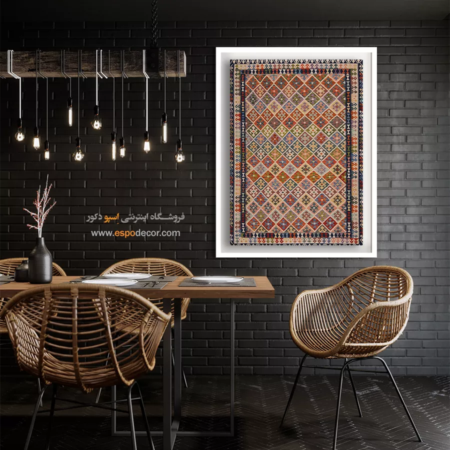 تابلوی دکوراتیو با طرح گلیم افغان، تلفیقی بینظیر از هنر اصیل شرقی و طراحی مدرن است. این تابلو با الهام از نقشونگارهای سنتی گلیمهای افغانستان، حس گرما، صمیمیت و اصالت را به فضای خانه یا محل کار شما میآورد و انتخابی منحصربهفرد برای دوستداران فرهنگ و هنر شرقی است.