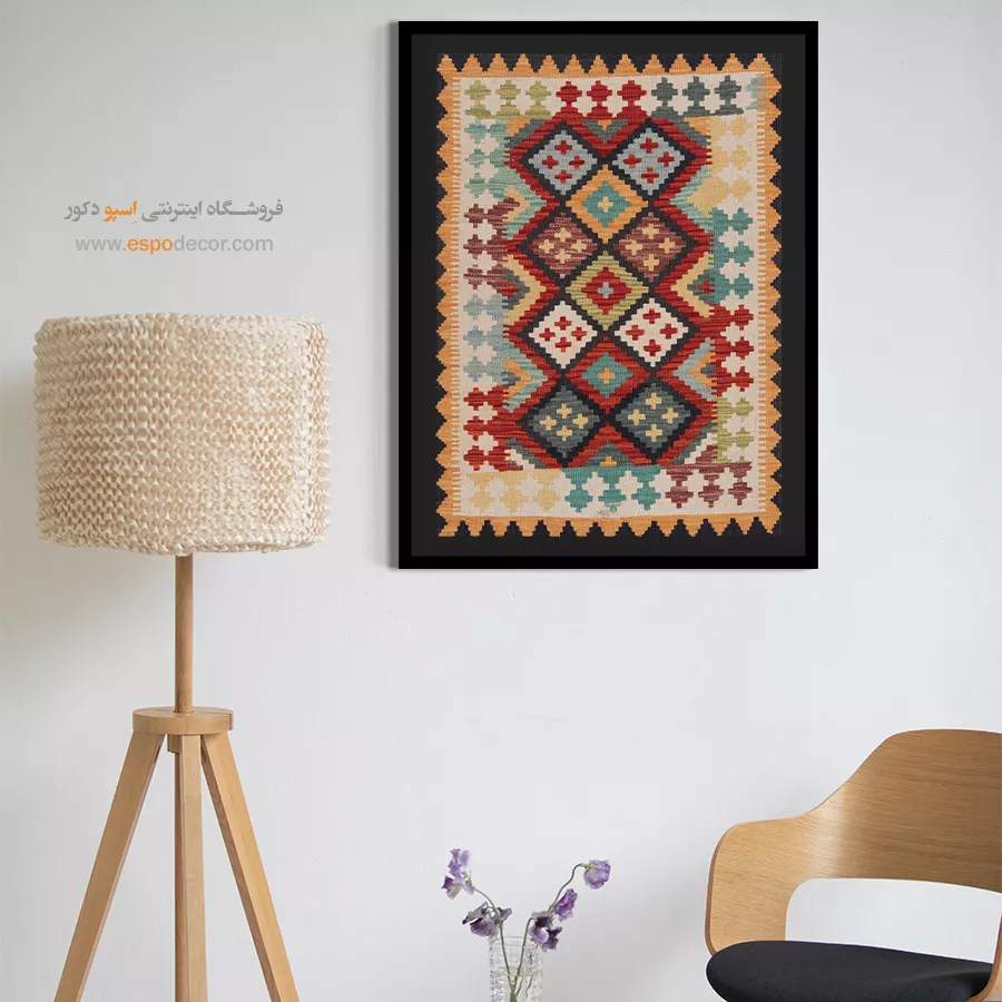 تابلوی گلیم افغان، فراتر از یک عنصر تزئینی ساده است؛ این اثر هنری، داستانی از فرهنگ و سنت‌های کهن افغانستان را روایت می‌کند. با الهام از نقوش هندسی و رنگ‌های گرم گلیم‌های دست‌بافت افغان، این تابلو حال و هوایی متفاوت به دکوراسیون شما می‌بخشد و جلوه‌ای منحصر‌به‌فرد ایجاد می‌کند. رنگ‌های به‌کاررفته در این تابلو، عموماً از پالت‌های خاکی، آجری، لاجوردی و زرشکی انتخاب شده‌اند که بافت طبیعی گلیم را به‌خوبی بازتاب می‌دهند. این طیف رنگی به‌راحتی با سبک‌های مختلف دکوراسیون داخلی مانند بوهو، مینیمال، سنتی یا حتی صنعتی هماهنگ می‌شود. طرح گلیم در این تابلو با دقت و وضوح بالا چاپ شده بر روی متریالی با کیفیت بوم. استفاده از قاب‌های مدرن یا کلاسیک بنا به انتخاب شما، امکان هماهنگ‌سازی تابلو با فضای داخلی را فراهم می‌کند. کیفیت چاپ و مواد اولیه تضمین‌کننده دوام رنگ و ماندگاری بالای تصویر است. این تابلو نه تنها یک انتخاب زیباشناسانه برای فضای نشیمن، اتاق خواب یا محل کار است، بلکه می‌تواند به‌عنوان هدیه‌ای خاص برای علاقه‌مندان به هنرهای شرقی نیز در نظر گرفته شود. تابلوی گلیم افغان، پلی میان گذشته و حال است؛ جایی که اصالت با خلاقیت معاصر گره خورده است. اگر به‌دنبال تزئین فضایی گرم، هنری و متفاوت هستید، این تابلو می‌تواند انتخابی هوشمندانه باشد. هر نگاه به آن، بیننده را به سفری بصری در دل سنت‌های رنگارنگ آسیای میانه می‌برد. با انتخاب این تابلو، بخشی از روح فرهنگی گلیم‌های افغان را به فضای زندگی خود دعوت کنید.