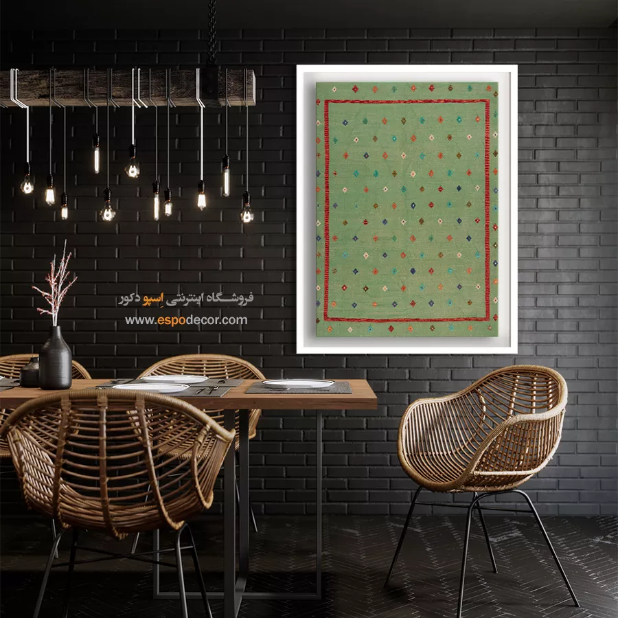تابلوی گلیم افغان، فراتر از یک عنصر تزئینی ساده است؛ این اثر هنری، داستانی از فرهنگ و سنت‌های کهن افغانستان را روایت می‌کند. با الهام از نقوش هندسی و رنگ‌های گرم گلیم‌های دست‌بافت افغان، این تابلو حال و هوایی متفاوت به دکوراسیون شما می‌بخشد و جلوه‌ای منحصر‌به‌فرد ایجاد می‌کند. رنگ‌های به‌کاررفته در این تابلو، عموماً از پالت‌های خاکی، آجری، لاجوردی و زرشکی انتخاب شده‌اند که بافت طبیعی گلیم را به‌خوبی بازتاب می‌دهند. این طیف رنگی به‌راحتی با سبک‌های مختلف دکوراسیون داخلی مانند بوهو، مینیمال، سنتی یا حتی صنعتی هماهنگ می‌شود. طرح گلیم در این تابلو با دقت و وضوح بالا چاپ شده بر روی متریالی با کیفیت بوم. استفاده از قاب‌های مدرن یا کلاسیک بنا به انتخاب شما، امکان هماهنگ‌سازی تابلو با فضای داخلی را فراهم می‌کند. کیفیت چاپ و مواد اولیه تضمین‌کننده دوام رنگ و ماندگاری بالای تصویر است. این تابلو نه تنها یک انتخاب زیباشناسانه برای فضای نشیمن، اتاق خواب یا محل کار است، بلکه می‌تواند به‌عنوان هدیه‌ای خاص برای علاقه‌مندان به هنرهای شرقی نیز در نظر گرفته شود. تابلوی گلیم افغان، پلی میان گذشته و حال است؛ جایی که اصالت با خلاقیت معاصر گره خورده است. اگر به‌دنبال تزئین فضایی گرم، هنری و متفاوت هستید، این تابلو می‌تواند انتخابی هوشمندانه باشد. هر نگاه به آن، بیننده را به سفری بصری در دل سنت‌های رنگارنگ آسیای میانه می‌برد. با انتخاب این تابلو، بخشی از روح فرهنگی گلیم‌های افغان را به فضای زندگی خود دعوت کنید.