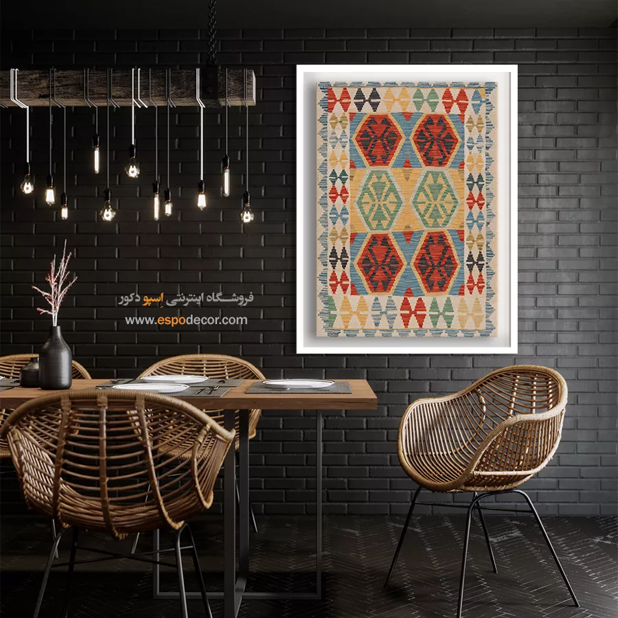 تابلوی دکوراتیو با طرح گلیم افغان، تلفیقی بینظیر از هنر اصیل شرقی و طراحی مدرن است. این تابلو با الهام از نقشونگارهای سنتی گلیمهای افغانستان، حس گرما، صمیمیت و اصالت را به فضای خانه یا محل کار شما میآورد و انتخابی منحصربهفرد برای دوستداران فرهنگ و هنر شرقی است.