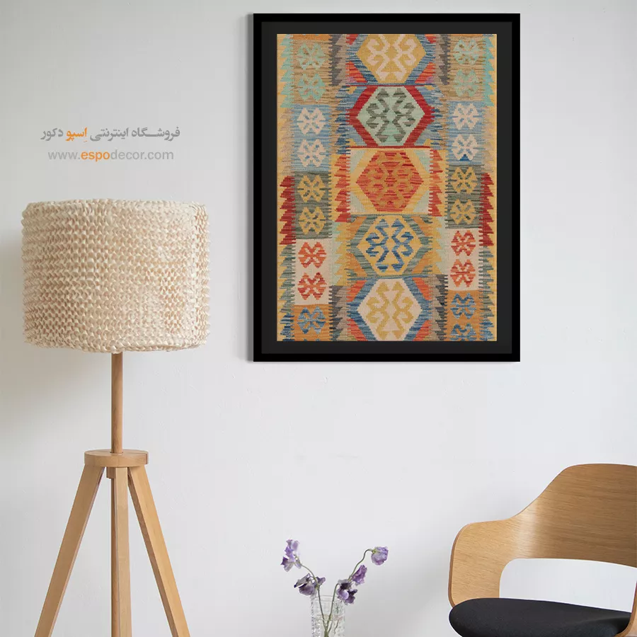 تابلوی گلیم افغان، فراتر از یک عنصر تزئینی ساده است؛ این اثر هنری، داستانی از فرهنگ و سنت‌های کهن افغانستان را روایت می‌کند. با الهام از نقوش هندسی و رنگ‌های گرم گلیم‌های دست‌بافت افغان، این تابلو حال و هوایی متفاوت به دکوراسیون شما می‌بخشد و جلوه‌ای منحصر‌به‌فرد ایجاد می‌کند. رنگ‌های به‌کاررفته در این تابلو، عموماً از پالت‌های خاکی، آجری، لاجوردی و زرشکی انتخاب شده‌اند که بافت طبیعی گلیم را به‌خوبی بازتاب می‌دهند. این طیف رنگی به‌راحتی با سبک‌های مختلف دکوراسیون داخلی مانند بوهو، مینیمال، سنتی یا حتی صنعتی هماهنگ می‌شود. طرح گلیم در این تابلو با دقت و وضوح بالا چاپ شده بر روی متریالی با کیفیت بوم. استفاده از قاب‌های مدرن یا کلاسیک بنا به انتخاب شما، امکان هماهنگ‌سازی تابلو با فضای داخلی را فراهم می‌کند. کیفیت چاپ و مواد اولیه تضمین‌کننده دوام رنگ و ماندگاری بالای تصویر است. این تابلو نه تنها یک انتخاب زیباشناسانه برای فضای نشیمن، اتاق خواب یا محل کار است، بلکه می‌تواند به‌عنوان هدیه‌ای خاص برای علاقه‌مندان به هنرهای شرقی نیز در نظر گرفته شود. تابلوی گلیم افغان، پلی میان گذشته و حال است؛ جایی که اصالت با خلاقیت معاصر گره خورده است. اگر به‌دنبال تزئین فضایی گرم، هنری و متفاوت هستید، این تابلو می‌تواند انتخابی هوشمندانه باشد. هر نگاه به آن، بیننده را به سفری بصری در دل سنت‌های رنگارنگ آسیای میانه می‌برد. با انتخاب این تابلو، بخشی از روح فرهنگی گلیم‌های افغان را به فضای زندگی خود دعوت کنید.