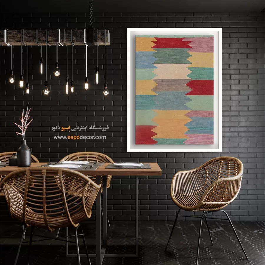 تابلوی دکوراتیو با طرح گلیم افغان، تلفیقی بینظیر از هنر اصیل شرقی و طراحی مدرن است. این تابلو با الهام از نقشونگارهای سنتی گلیمهای افغانستان، حس گرما، صمیمیت و اصالت را به فضای خانه یا محل کار شما میآورد و انتخابی منحصربهفرد برای دوستداران فرهنگ و هنر شرقی است.