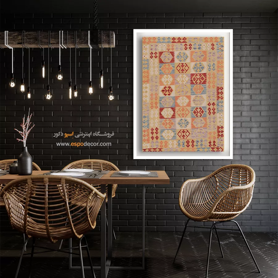 تابلوی گلیم افغان، فراتر از یک عنصر تزئینی ساده است؛ این اثر هنری، داستانی از فرهنگ و سنت‌های کهن افغانستان را روایت می‌کند. با الهام از نقوش هندسی و رنگ‌های گرم گلیم‌های دست‌بافت افغان، این تابلو حال و هوایی متفاوت به دکوراسیون شما می‌بخشد و جلوه‌ای منحصر‌به‌فرد ایجاد می‌کند. رنگ‌های به‌کاررفته در این تابلو، عموماً از پالت‌های خاکی، آجری، لاجوردی و زرشکی انتخاب شده‌اند که بافت طبیعی گلیم را به‌خوبی بازتاب می‌دهند. این طیف رنگی به‌راحتی با سبک‌های مختلف دکوراسیون داخلی مانند بوهو، مینیمال، سنتی یا حتی صنعتی هماهنگ می‌شود. طرح گلیم در این تابلو با دقت و وضوح بالا چاپ شده بر روی متریالی با کیفیت بوم. استفاده از قاب‌های مدرن یا کلاسیک بنا به انتخاب شما، امکان هماهنگ‌سازی تابلو با فضای داخلی را فراهم می‌کند. کیفیت چاپ و مواد اولیه تضمین‌کننده دوام رنگ و ماندگاری بالای تصویر است. این تابلو نه تنها یک انتخاب زیباشناسانه برای فضای نشیمن، اتاق خواب یا محل کار است، بلکه می‌تواند به‌عنوان هدیه‌ای خاص برای علاقه‌مندان به هنرهای شرقی نیز در نظر گرفته شود. تابلوی گلیم افغان، پلی میان گذشته و حال است؛ جایی که اصالت با خلاقیت معاصر گره خورده است. اگر به‌دنبال تزئین فضایی گرم، هنری و متفاوت هستید، این تابلو می‌تواند انتخابی هوشمندانه باشد. هر نگاه به آن، بیننده را به سفری بصری در دل سنت‌های رنگارنگ آسیای میانه می‌برد. با انتخاب این تابلو، بخشی از روح فرهنگی گلیم‌های افغان را به فضای زندگی خود دعوت کنید.