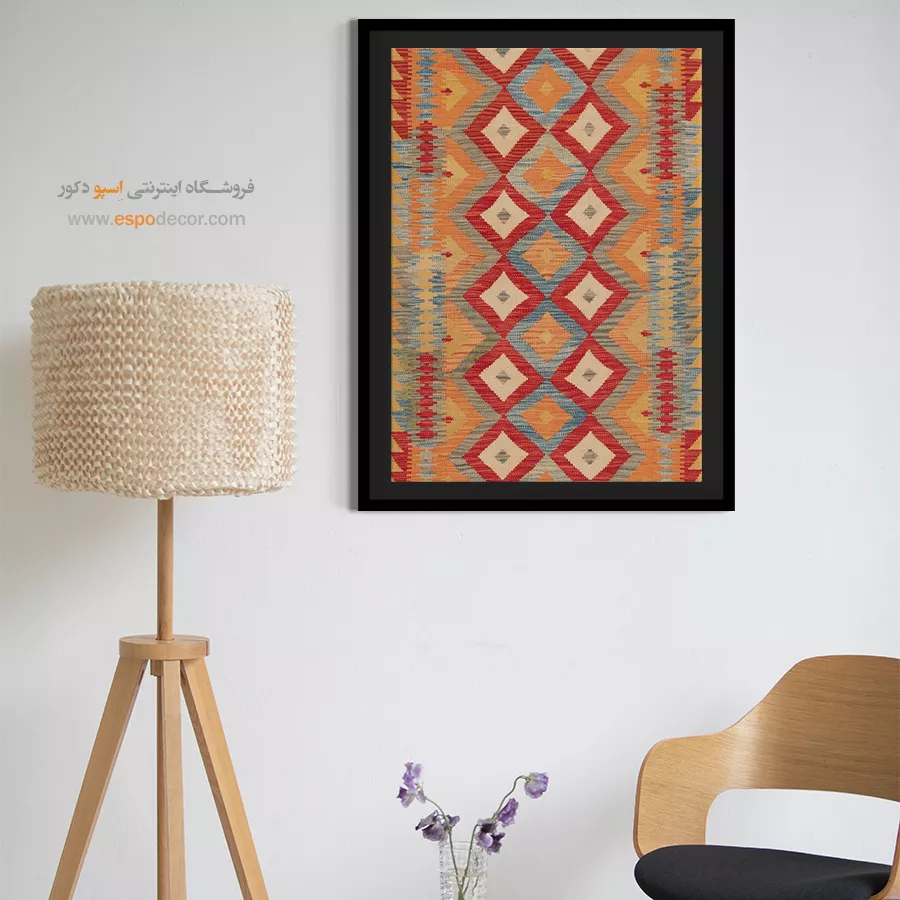 تابلوی گلیم افغان، فراتر از یک عنصر تزئینی ساده است؛ این اثر هنری، داستانی از فرهنگ و سنت‌های کهن افغانستان را روایت می‌کند. با الهام از نقوش هندسی و رنگ‌های گرم گلیم‌های دست‌بافت افغان، این تابلو حال و هوایی متفاوت به دکوراسیون شما می‌بخشد و جلوه‌ای منحصر‌به‌فرد ایجاد می‌کند. رنگ‌های به‌کاررفته در این تابلو، عموماً از پالت‌های خاکی، آجری، لاجوردی و زرشکی انتخاب شده‌اند که بافت طبیعی گلیم را به‌خوبی بازتاب می‌دهند. این طیف رنگی به‌راحتی با سبک‌های مختلف دکوراسیون داخلی مانند بوهو، مینیمال، سنتی یا حتی صنعتی هماهنگ می‌شود. طرح گلیم در این تابلو با دقت و وضوح بالا چاپ شده بر روی متریالی با کیفیت بوم. استفاده از قاب‌های مدرن یا کلاسیک بنا به انتخاب شما، امکان هماهنگ‌سازی تابلو با فضای داخلی را فراهم می‌کند. کیفیت چاپ و مواد اولیه تضمین‌کننده دوام رنگ و ماندگاری بالای تصویر است. این تابلو نه تنها یک انتخاب زیباشناسانه برای فضای نشیمن، اتاق خواب یا محل کار است، بلکه می‌تواند به‌عنوان هدیه‌ای خاص برای علاقه‌مندان به هنرهای شرقی نیز در نظر گرفته شود. تابلوی گلیم افغان، پلی میان گذشته و حال است؛ جایی که اصالت با خلاقیت معاصر گره خورده است. اگر به‌دنبال تزئین فضایی گرم، هنری و متفاوت هستید، این تابلو می‌تواند انتخابی هوشمندانه باشد. هر نگاه به آن، بیننده را به سفری بصری در دل سنت‌های رنگارنگ آسیای میانه می‌برد. با انتخاب این تابلو، بخشی از روح فرهنگی گلیم‌های افغان را به فضای زندگی خود دعوت کنید.