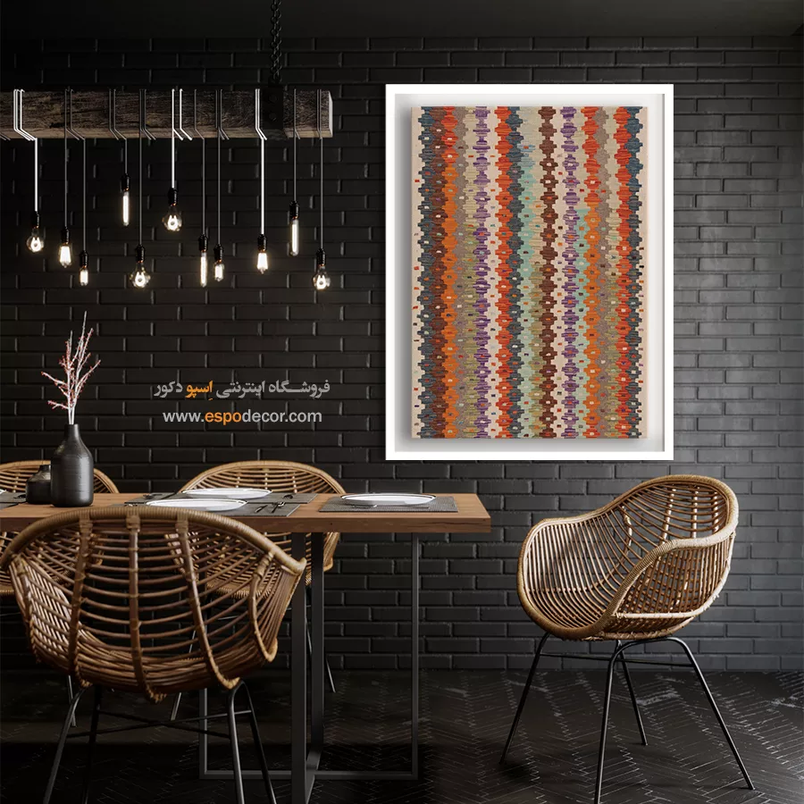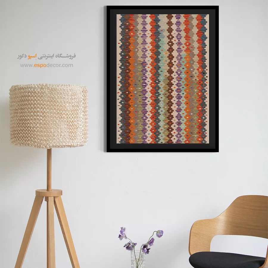 تابلوی گلیم افغان، فراتر از یک عنصر تزئینی ساده است؛ این اثر هنری، داستانی از فرهنگ و سنت‌های کهن افغانستان را روایت می‌کند. با الهام از نقوش هندسی و رنگ‌های گرم گلیم‌های دست‌بافت افغان، این تابلو حال و هوایی متفاوت به دکوراسیون شما می‌بخشد و جلوه‌ای منحصر‌به‌فرد ایجاد می‌کند. رنگ‌های به‌کاررفته در این تابلو، عموماً از پالت‌های خاکی، آجری، لاجوردی و زرشکی انتخاب شده‌اند که بافت طبیعی گلیم را به‌خوبی بازتاب می‌دهند. این طیف رنگی به‌راحتی با سبک‌های مختلف دکوراسیون داخلی مانند بوهو، مینیمال، سنتی یا حتی صنعتی هماهنگ می‌شود. طرح گلیم در این تابلو با دقت و وضوح بالا چاپ شده بر روی متریالی با کیفیت بوم. استفاده از قاب‌های مدرن یا کلاسیک بنا به انتخاب شما، امکان هماهنگ‌سازی تابلو با فضای داخلی را فراهم می‌کند. کیفیت چاپ و مواد اولیه تضمین‌کننده دوام رنگ و ماندگاری بالای تصویر است. این تابلو نه تنها یک انتخاب زیباشناسانه برای فضای نشیمن، اتاق خواب یا محل کار است، بلکه می‌تواند به‌عنوان هدیه‌ای خاص برای علاقه‌مندان به هنرهای شرقی نیز در نظر گرفته شود. تابلوی گلیم افغان، پلی میان گذشته و حال است؛ جایی که اصالت با خلاقیت معاصر گره خورده است. اگر به‌دنبال تزئین فضایی گرم، هنری و متفاوت هستید، این تابلو می‌تواند انتخابی هوشمندانه باشد. هر نگاه به آن، بیننده را به سفری بصری در دل سنت‌های رنگارنگ آسیای میانه می‌برد. با انتخاب این تابلو، بخشی از روح فرهنگی گلیم‌های افغان را به فضای زندگی خود دعوت کنید.