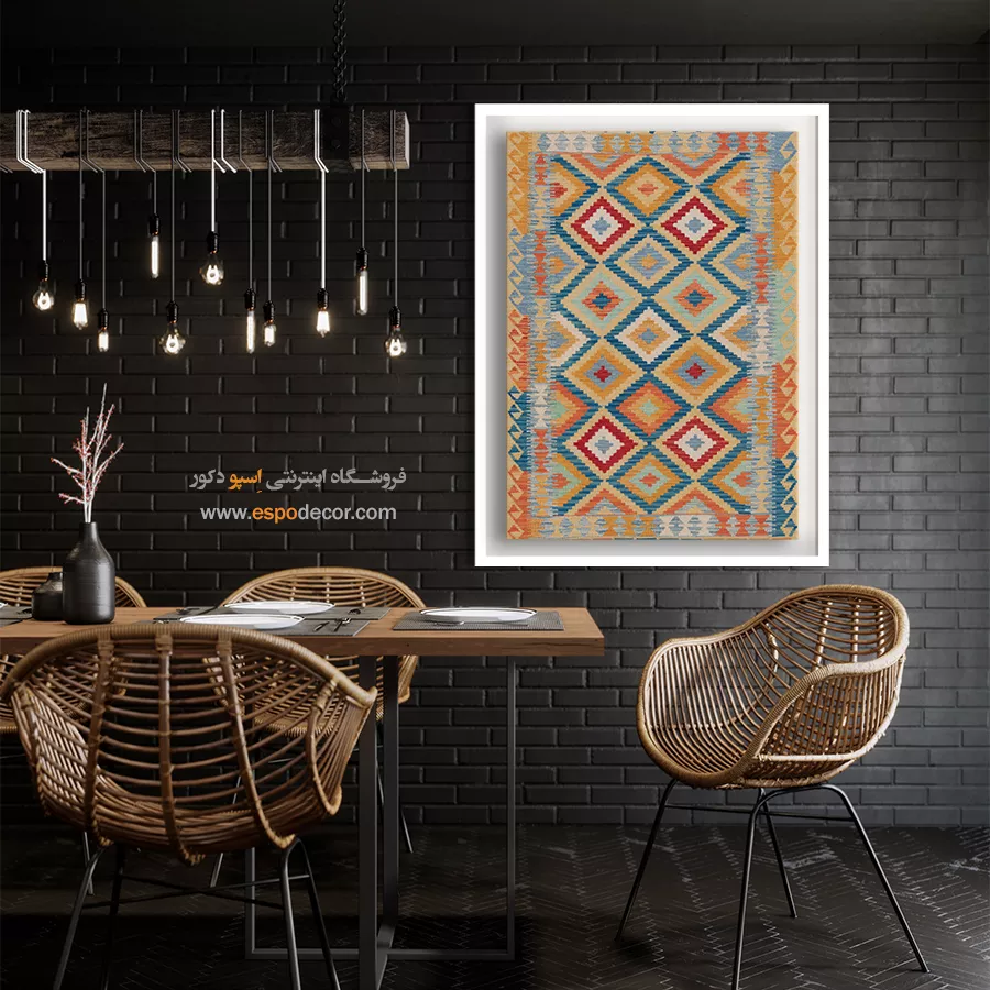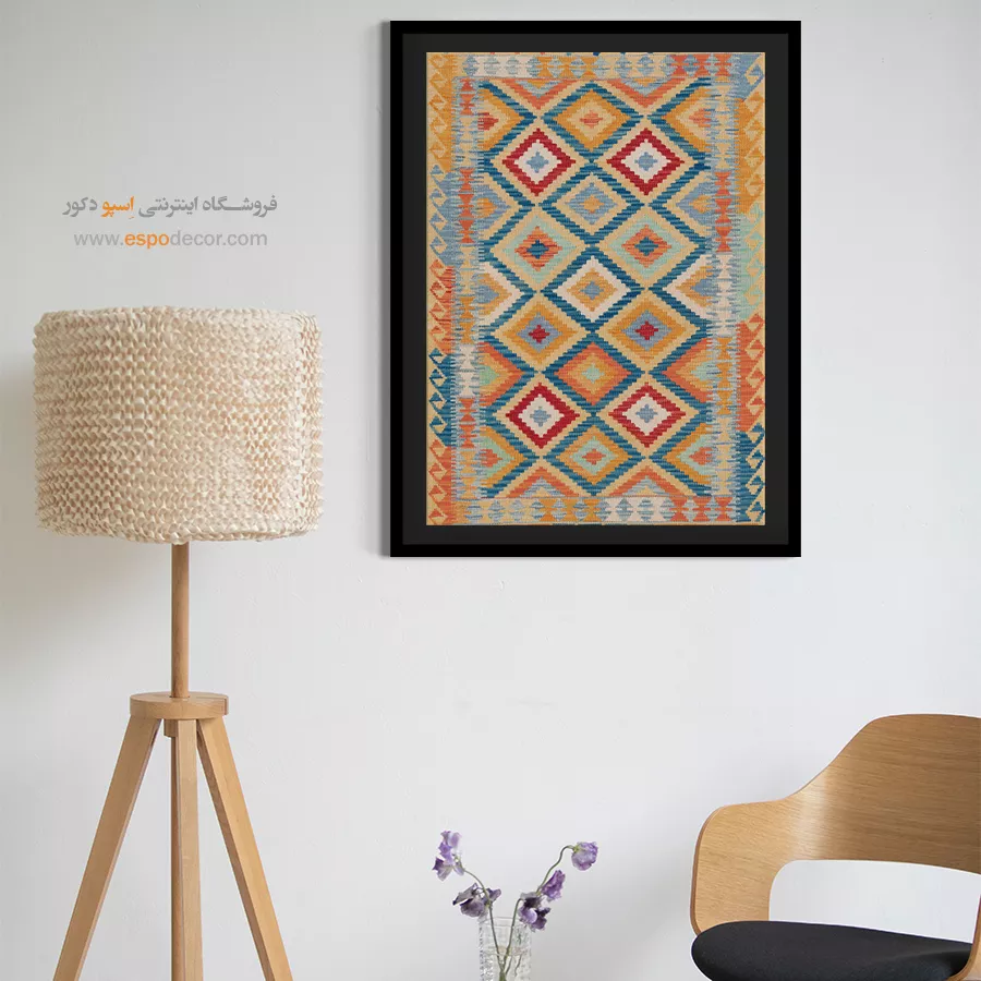 تابلوی گلیم افغان، فراتر از یک عنصر تزئینی ساده است؛ این اثر هنری، داستانی از فرهنگ و سنت‌های کهن افغانستان را روایت می‌کند. با الهام از نقوش هندسی و رنگ‌های گرم گلیم‌های دست‌بافت افغان، این تابلو حال و هوایی متفاوت به دکوراسیون شما می‌بخشد و جلوه‌ای منحصر‌به‌فرد ایجاد می‌کند. رنگ‌های به‌کاررفته در این تابلو، عموماً از پالت‌های خاکی، آجری، لاجوردی و زرشکی انتخاب شده‌اند که بافت طبیعی گلیم را به‌خوبی بازتاب می‌دهند. این طیف رنگی به‌راحتی با سبک‌های مختلف دکوراسیون داخلی مانند بوهو، مینیمال، سنتی یا حتی صنعتی هماهنگ می‌شود. طرح گلیم در این تابلو با دقت و وضوح بالا چاپ شده بر روی متریالی با کیفیت بوم. استفاده از قاب‌های مدرن یا کلاسیک بنا به انتخاب شما، امکان هماهنگ‌سازی تابلو با فضای داخلی را فراهم می‌کند. کیفیت چاپ و مواد اولیه تضمین‌کننده دوام رنگ و ماندگاری بالای تصویر است. این تابلو نه تنها یک انتخاب زیباشناسانه برای فضای نشیمن، اتاق خواب یا محل کار است، بلکه می‌تواند به‌عنوان هدیه‌ای خاص برای علاقه‌مندان به هنرهای شرقی نیز در نظر گرفته شود. تابلوی گلیم افغان، پلی میان گذشته و حال است؛ جایی که اصالت با خلاقیت معاصر گره خورده است. اگر به‌دنبال تزئین فضایی گرم، هنری و متفاوت هستید، این تابلو می‌تواند انتخابی هوشمندانه باشد. هر نگاه به آن، بیننده را به سفری بصری در دل سنت‌های رنگارنگ آسیای میانه می‌برد. با انتخاب این تابلو، بخشی از روح فرهنگی گلیم‌های افغان را به فضای زندگی خود دعوت کنید.