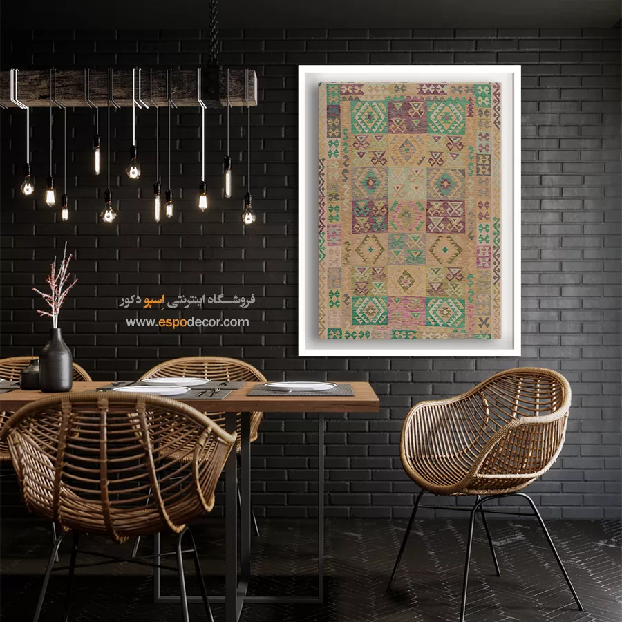 تابلوی گلیم افغان، فراتر از یک عنصر تزئینی ساده است؛ این اثر هنری، داستانی از فرهنگ و سنت‌های کهن افغانستان را روایت می‌کند. با الهام از نقوش هندسی و رنگ‌های گرم گلیم‌های دست‌بافت افغان، این تابلو حال و هوایی متفاوت به دکوراسیون شما می‌بخشد و جلوه‌ای منحصر‌به‌فرد ایجاد می‌کند. رنگ‌های به‌کاررفته در این تابلو، عموماً از پالت‌های خاکی، آجری، لاجوردی و زرشکی انتخاب شده‌اند که بافت طبیعی گلیم را به‌خوبی بازتاب می‌دهند. این طیف رنگی به‌راحتی با سبک‌های مختلف دکوراسیون داخلی مانند بوهو، مینیمال، سنتی یا حتی صنعتی هماهنگ می‌شود. طرح گلیم در این تابلو با دقت و وضوح بالا چاپ شده بر روی متریالی با کیفیت بوم. استفاده از قاب‌های مدرن یا کلاسیک بنا به انتخاب شما، امکان هماهنگ‌سازی تابلو با فضای داخلی را فراهم می‌کند. کیفیت چاپ و مواد اولیه تضمین‌کننده دوام رنگ و ماندگاری بالای تصویر است. این تابلو نه تنها یک انتخاب زیباشناسانه برای فضای نشیمن، اتاق خواب یا محل کار است، بلکه می‌تواند به‌عنوان هدیه‌ای خاص برای علاقه‌مندان به هنرهای شرقی نیز در نظر گرفته شود. تابلوی گلیم افغان، پلی میان گذشته و حال است؛ جایی که اصالت با خلاقیت معاصر گره خورده است. اگر به‌دنبال تزئین فضایی گرم، هنری و متفاوت هستید، این تابلو می‌تواند انتخابی هوشمندانه باشد. هر نگاه به آن، بیننده را به سفری بصری در دل سنت‌های رنگارنگ آسیای میانه می‌برد. با انتخاب این تابلو، بخشی از روح فرهنگی گلیم‌های افغان را به فضای زندگی خود دعوت کنید.