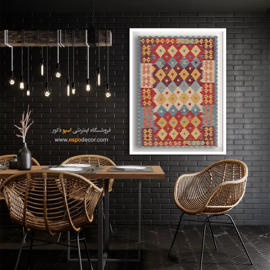 تابلوی دکوراتیو با طرح گلیم افغان، تلفیقی بینظیر از هنر اصیل شرقی و طراحی مدرن است. این تابلو با الهام از نقشونگارهای سنتی گلیمهای افغانستان، حس گرما، صمیمیت و اصالت را به فضای خانه یا محل کار شما میآورد و انتخابی منحصربهفرد برای دوستداران فرهنگ و هنر شرقی است.