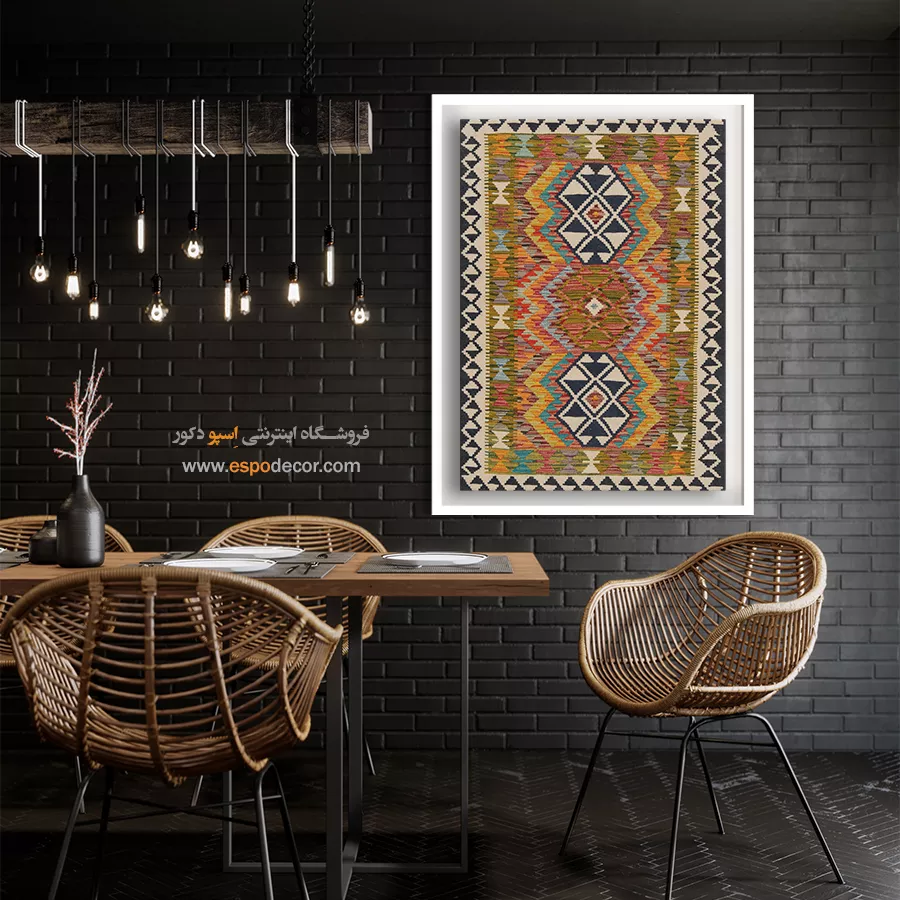 تابلوی گلیم افغان، فراتر از یک عنصر تزئینی ساده است؛ این اثر هنری، داستانی از فرهنگ و سنت‌های کهن افغانستان را روایت می‌کند. با الهام از نقوش هندسی و رنگ‌های گرم گلیم‌های دست‌بافت افغان، این تابلو حال و هوایی متفاوت به دکوراسیون شما می‌بخشد و جلوه‌ای منحصر‌به‌فرد ایجاد می‌کند. رنگ‌های به‌کاررفته در این تابلو، عموماً از پالت‌های خاکی، آجری، لاجوردی و زرشکی انتخاب شده‌اند که بافت طبیعی گلیم را به‌خوبی بازتاب می‌دهند. این طیف رنگی به‌راحتی با سبک‌های مختلف دکوراسیون داخلی مانند بوهو، مینیمال، سنتی یا حتی صنعتی هماهنگ می‌شود. طرح گلیم در این تابلو با دقت و وضوح بالا چاپ شده بر روی متریالی با کیفیت بوم. استفاده از قاب‌های مدرن یا کلاسیک بنا به انتخاب شما، امکان هماهنگ‌سازی تابلو با فضای داخلی را فراهم می‌کند. کیفیت چاپ و مواد اولیه تضمین‌کننده دوام رنگ و ماندگاری بالای تصویر است. این تابلو نه تنها یک انتخاب زیباشناسانه برای فضای نشیمن، اتاق خواب یا محل کار است، بلکه می‌تواند به‌عنوان هدیه‌ای خاص برای علاقه‌مندان به هنرهای شرقی نیز در نظر گرفته شود. تابلوی گلیم افغان، پلی میان گذشته و حال است؛ جایی که اصالت با خلاقیت معاصر گره خورده است. اگر به‌دنبال تزئین فضایی گرم، هنری و متفاوت هستید، این تابلو می‌تواند انتخابی هوشمندانه باشد. هر نگاه به آن، بیننده را به سفری بصری در دل سنت‌های رنگارنگ آسیای میانه می‌برد. با انتخاب این تابلو، بخشی از روح فرهنگی گلیم‌های افغان را به فضای زندگی خود دعوت کنید.