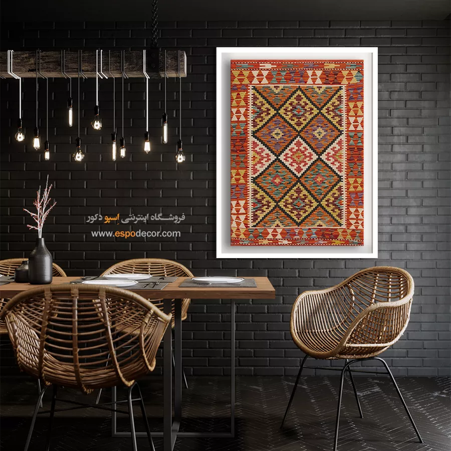 تابلوی گلیم افغان، فراتر از یک عنصر تزئینی ساده است؛ این اثر هنری، داستانی از فرهنگ و سنت‌های کهن افغانستان را روایت می‌کند. با الهام از نقوش هندسی و رنگ‌های گرم گلیم‌های دست‌بافت افغان، این تابلو حال و هوایی متفاوت به دکوراسیون شما می‌بخشد و جلوه‌ای منحصر‌به‌فرد ایجاد می‌کند. رنگ‌های به‌کاررفته در این تابلو، عموماً از پالت‌های خاکی، آجری، لاجوردی و زرشکی انتخاب شده‌اند که بافت طبیعی گلیم را به‌خوبی بازتاب می‌دهند. این طیف رنگی به‌راحتی با سبک‌های مختلف دکوراسیون داخلی مانند بوهو، مینیمال، سنتی یا حتی صنعتی هماهنگ می‌شود. طرح گلیم در این تابلو با دقت و وضوح بالا چاپ شده بر روی متریالی با کیفیت بوم. استفاده از قاب‌های مدرن یا کلاسیک بنا به انتخاب شما، امکان هماهنگ‌سازی تابلو با فضای داخلی را فراهم می‌کند. کیفیت چاپ و مواد اولیه تضمین‌کننده دوام رنگ و ماندگاری بالای تصویر است. این تابلو نه تنها یک انتخاب زیباشناسانه برای فضای نشیمن، اتاق خواب یا محل کار است، بلکه می‌تواند به‌عنوان هدیه‌ای خاص برای علاقه‌مندان به هنرهای شرقی نیز در نظر گرفته شود. تابلوی گلیم افغان، پلی میان گذشته و حال است؛ جایی که اصالت با خلاقیت معاصر گره خورده است. اگر به‌دنبال تزئین فضایی گرم، هنری و متفاوت هستید، این تابلو می‌تواند انتخابی هوشمندانه باشد. هر نگاه به آن، بیننده را به سفری بصری در دل سنت‌های رنگارنگ آسیای میانه می‌برد. با انتخاب این تابلو، بخشی از روح فرهنگی گلیم‌های افغان را به فضای زندگی خود دعوت کنید.