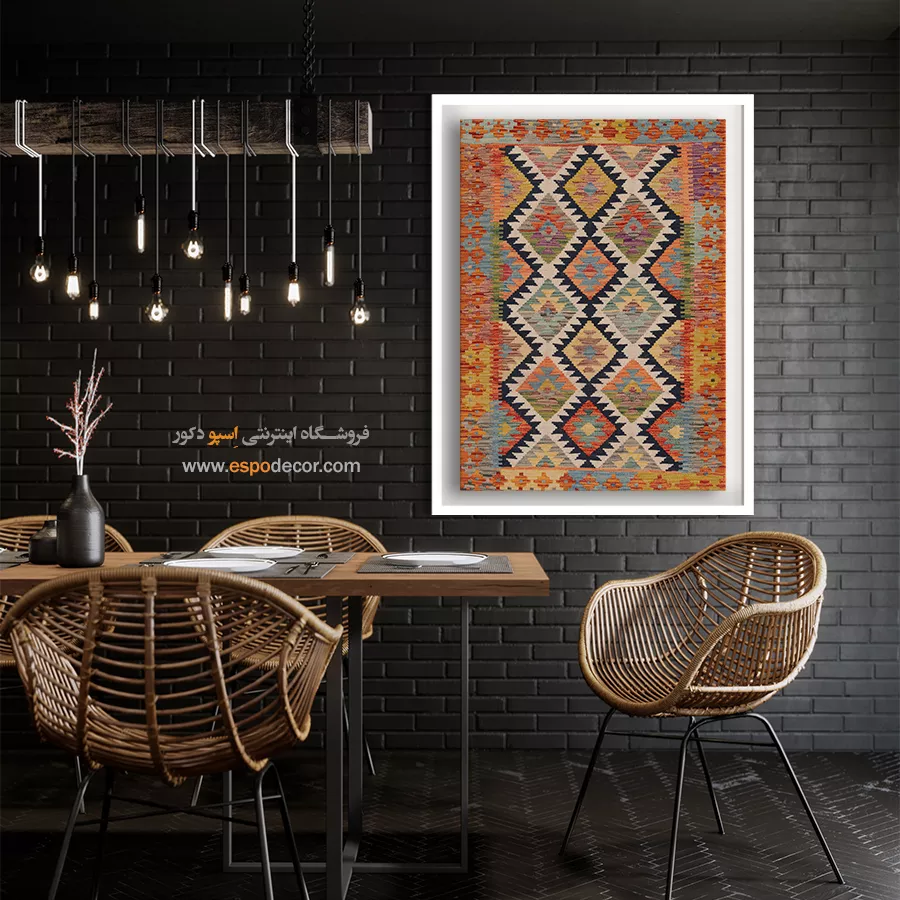تابلوی گلیم افغان، فراتر از یک عنصر تزئینی ساده است؛ این اثر هنری، داستانی از فرهنگ و سنت‌های کهن افغانستان را روایت می‌کند. با الهام از نقوش هندسی و رنگ‌های گرم گلیم‌های دست‌بافت افغان، این تابلو حال و هوایی متفاوت به دکوراسیون شما می‌بخشد و جلوه‌ای منحصر‌به‌فرد ایجاد می‌کند. رنگ‌های به‌کاررفته در این تابلو، عموماً از پالت‌های خاکی، آجری، لاجوردی و زرشکی انتخاب شده‌اند که بافت طبیعی گلیم را به‌خوبی بازتاب می‌دهند. این طیف رنگی به‌راحتی با سبک‌های مختلف دکوراسیون داخلی مانند بوهو، مینیمال، سنتی یا حتی صنعتی هماهنگ می‌شود. طرح گلیم در این تابلو با دقت و وضوح بالا چاپ شده بر روی متریالی با کیفیت بوم. استفاده از قاب‌های مدرن یا کلاسیک بنا به انتخاب شما، امکان هماهنگ‌سازی تابلو با فضای داخلی را فراهم می‌کند. کیفیت چاپ و مواد اولیه تضمین‌کننده دوام رنگ و ماندگاری بالای تصویر است. این تابلو نه تنها یک انتخاب زیباشناسانه برای فضای نشیمن، اتاق خواب یا محل کار است، بلکه می‌تواند به‌عنوان هدیه‌ای خاص برای علاقه‌مندان به هنرهای شرقی نیز در نظر گرفته شود. تابلوی گلیم افغان، پلی میان گذشته و حال است؛ جایی که اصالت با خلاقیت معاصر گره خورده است. اگر به‌دنبال تزئین فضایی گرم، هنری و متفاوت هستید، این تابلو می‌تواند انتخابی هوشمندانه باشد. هر نگاه به آن، بیننده را به سفری بصری در دل سنت‌های رنگارنگ آسیای میانه می‌برد. با انتخاب این تابلو، بخشی از روح فرهنگی گلیم‌های افغان را به فضای زندگی خود دعوت کنید.
