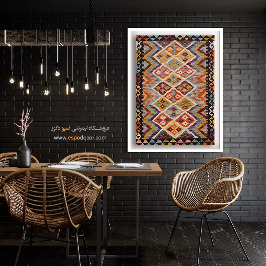 تابلوی دکوراتیو با طرح گلیم افغان، تلفیقی بینظیر از هنر اصیل شرقی و طراحی مدرن است. این تابلو با الهام از نقشونگارهای سنتی گلیمهای افغانستان، حس گرما، صمیمیت و اصالت را به فضای خانه یا محل کار شما میآورد و انتخابی منحصربهفرد برای دوستداران فرهنگ و هنر شرقی است.