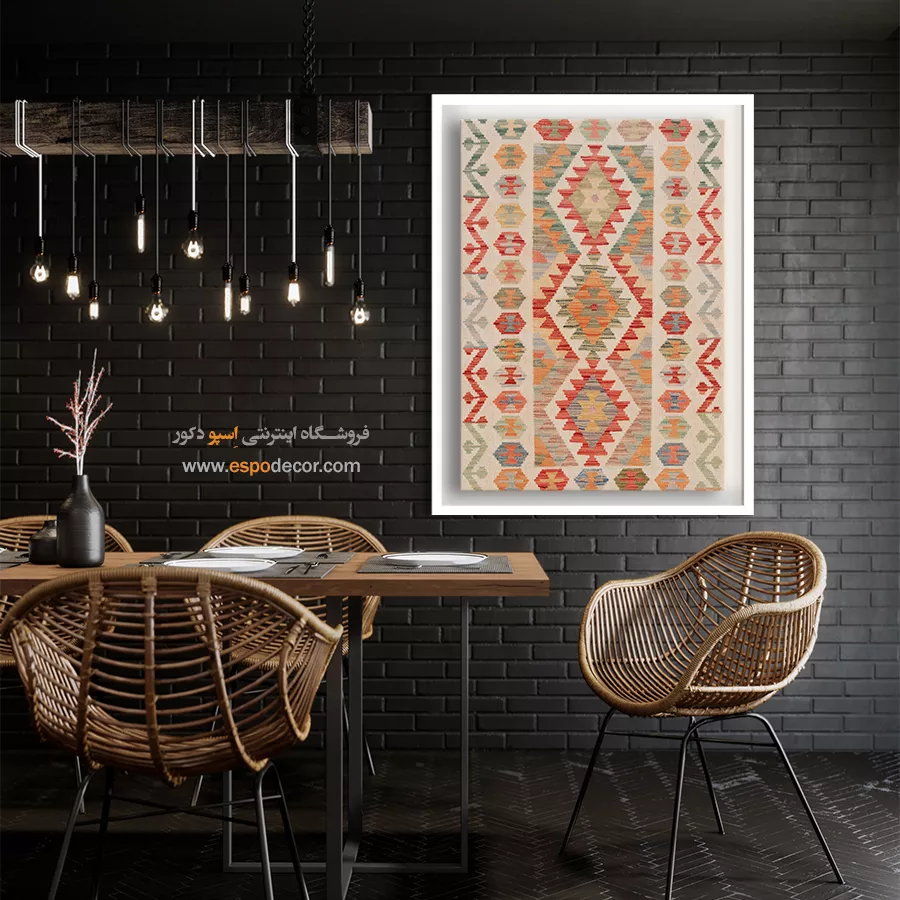 تابلوی دکوراتیو با طرح گلیم افغان، تلفیقی بینظیر از هنر اصیل شرقی و طراحی مدرن است. این تابلو با الهام از نقشونگارهای سنتی گلیمهای افغانستان، حس گرما، صمیمیت و اصالت را به فضای خانه یا محل کار شما میآورد و انتخابی منحصربهفرد برای دوستداران فرهنگ و هنر شرقی است.