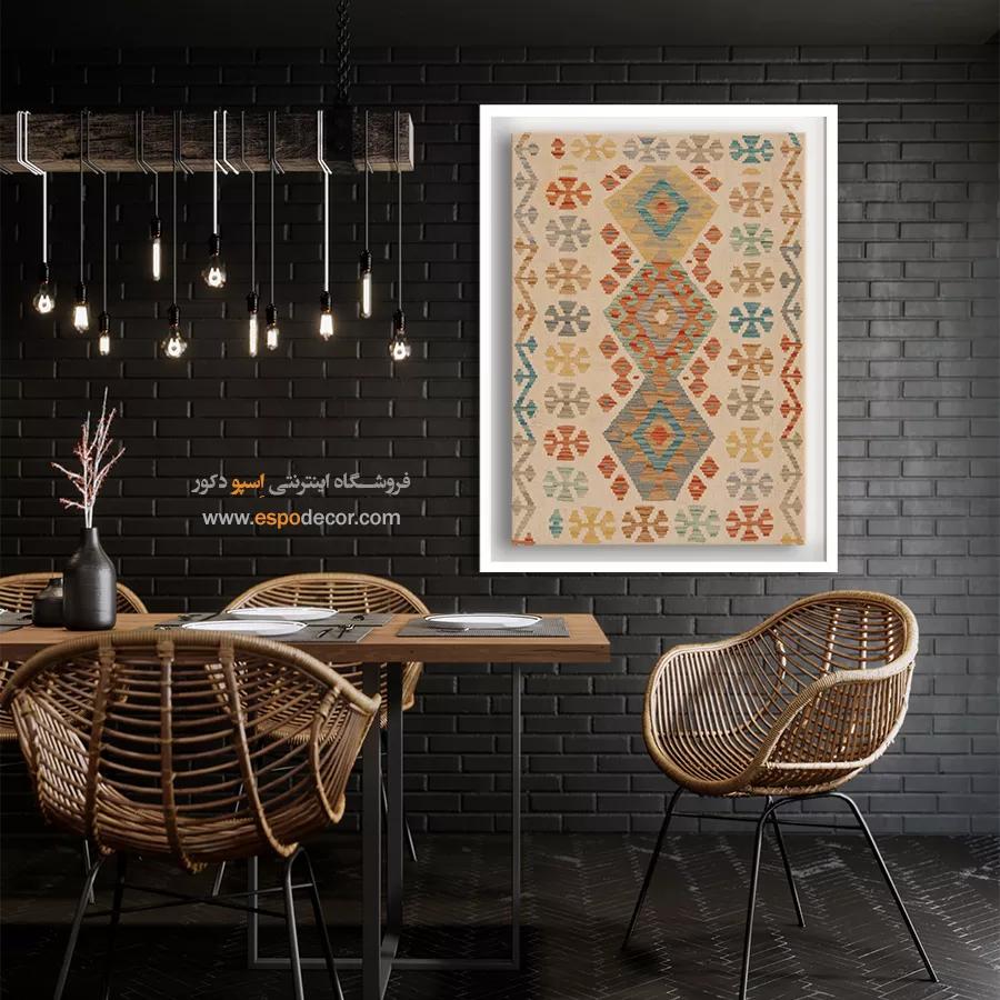 تابلوی دکوراتیو با طرح گلیم افغان، تلفیقی بینظیر از هنر اصیل شرقی و طراحی مدرن است. این تابلو با الهام از نقشونگارهای سنتی گلیمهای افغانستان، حس گرما، صمیمیت و اصالت را به فضای خانه یا محل کار شما میآورد و انتخابی منحصربهفرد برای دوستداران فرهنگ و هنر شرقی است.