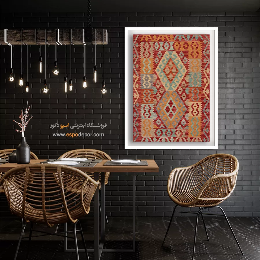 تابلوی دکوراتیو با طرح گلیم افغان، تلفیقی بینظیر از هنر اصیل شرقی و طراحی مدرن است. این تابلو با الهام از نقشونگارهای سنتی گلیمهای افغانستان، حس گرما، صمیمیت و اصالت را به فضای خانه یا محل کار شما میآورد و انتخابی منحصربهفرد برای دوستداران فرهنگ و هنر شرقی است.
