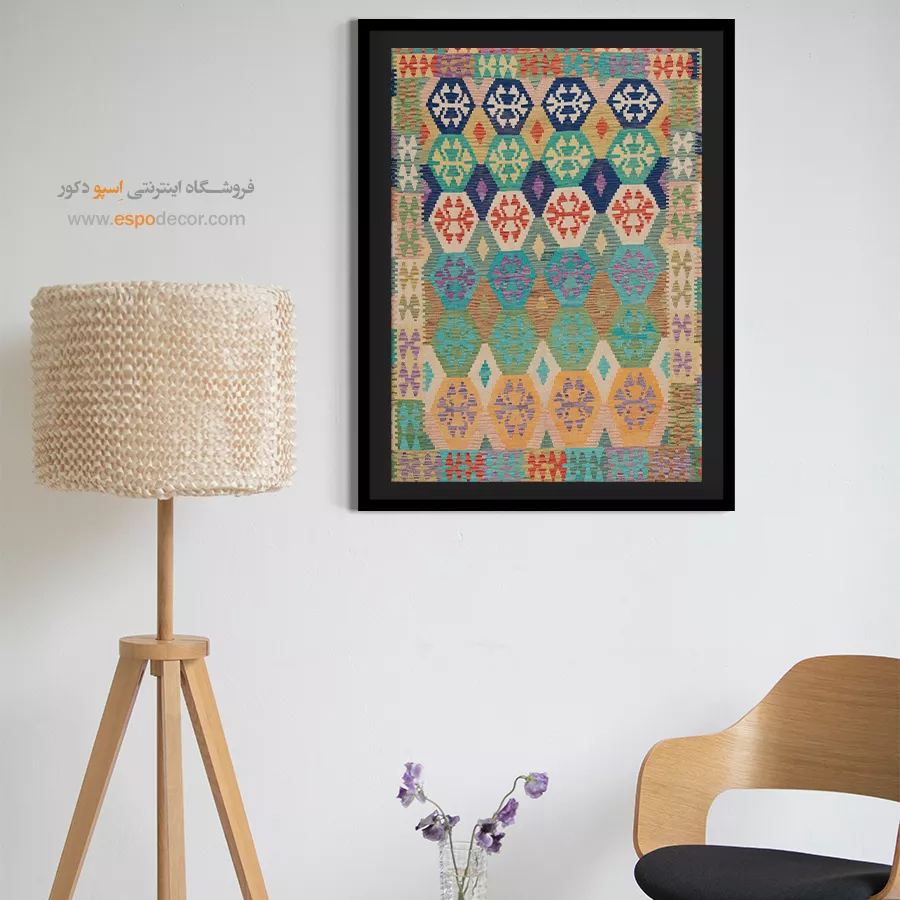 تابلوی دکوراتیو با طرح گلیم افغان، تلفیقی بینظیر از هنر اصیل شرقی و طراحی مدرن است. این تابلو با الهام از نقشونگارهای سنتی گلیمهای افغانستان، حس گرما، صمیمیت و اصالت را به فضای خانه یا محل کار شما میآورد و انتخابی منحصربهفرد برای دوستداران فرهنگ و هنر شرقی است.