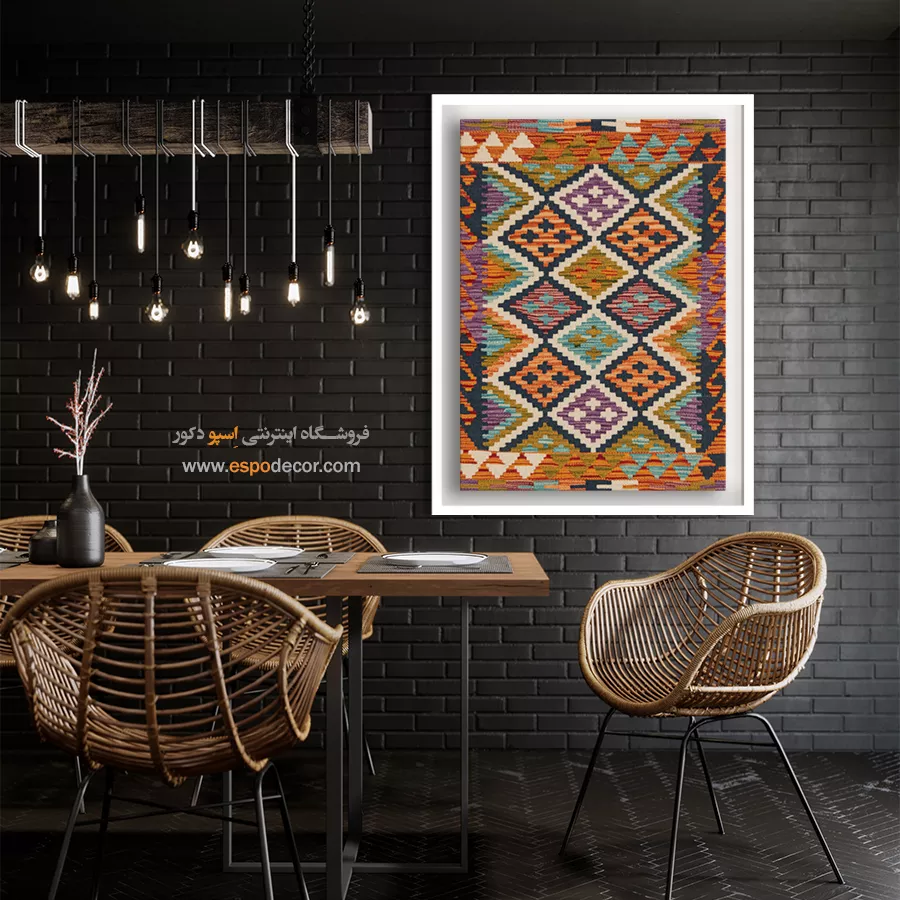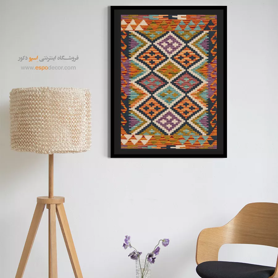 تابلوی دکوراتیو با طرح گلیم افغان، تلفیقی بینظیر از هنر اصیل شرقی و طراحی مدرن است. این تابلو با الهام از نقشونگارهای سنتی گلیمهای افغانستان، حس گرما، صمیمیت و اصالت را به فضای خانه یا محل کار شما میآورد و انتخابی منحصربهفرد برای دوستداران فرهنگ و هنر شرقی است.