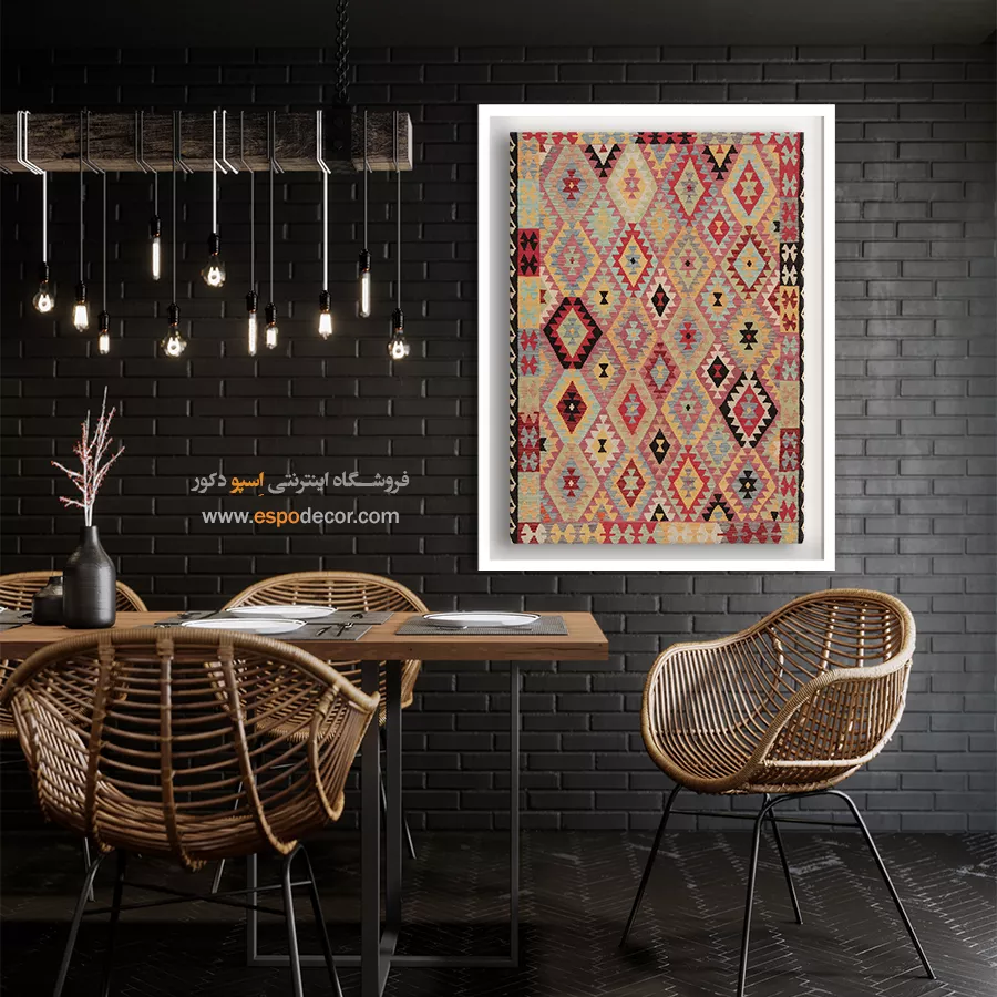 تابلوی گلیم افغان، فراتر از یک عنصر تزئینی ساده است؛ این اثر هنری، داستانی از فرهنگ و سنت‌های کهن افغانستان را روایت می‌کند. با الهام از نقوش هندسی و رنگ‌های گرم گلیم‌های دست‌بافت افغان، این تابلو حال و هوایی متفاوت به دکوراسیون شما می‌بخشد و جلوه‌ای منحصر‌به‌فرد ایجاد می‌کند. رنگ‌های به‌کاررفته در این تابلو، عموماً از پالت‌های خاکی، آجری، لاجوردی و زرشکی انتخاب شده‌اند که بافت طبیعی گلیم را به‌خوبی بازتاب می‌دهند. این طیف رنگی به‌راحتی با سبک‌های مختلف دکوراسیون داخلی مانند بوهو، مینیمال، سنتی یا حتی صنعتی هماهنگ می‌شود. طرح گلیم در این تابلو با دقت و وضوح بالا چاپ شده بر روی متریالی با کیفیت بوم. استفاده از قاب‌های مدرن یا کلاسیک بنا به انتخاب شما، امکان هماهنگ‌سازی تابلو با فضای داخلی را فراهم می‌کند. کیفیت چاپ و مواد اولیه تضمین‌کننده دوام رنگ و ماندگاری بالای تصویر است. این تابلو نه تنها یک انتخاب زیباشناسانه برای فضای نشیمن، اتاق خواب یا محل کار است، بلکه می‌تواند به‌عنوان هدیه‌ای خاص برای علاقه‌مندان به هنرهای شرقی نیز در نظر گرفته شود. تابلوی گلیم افغان، پلی میان گذشته و حال است؛ جایی که اصالت با خلاقیت معاصر گره خورده است. اگر به‌دنبال تزئین فضایی گرم، هنری و متفاوت هستید، این تابلو می‌تواند انتخابی هوشمندانه باشد. هر نگاه به آن، بیننده را به سفری بصری در دل سنت‌های رنگارنگ آسیای میانه می‌برد. با انتخاب این تابلو، بخشی از روح فرهنگی گلیم‌های افغان را به فضای زندگی خود دعوت کنید.