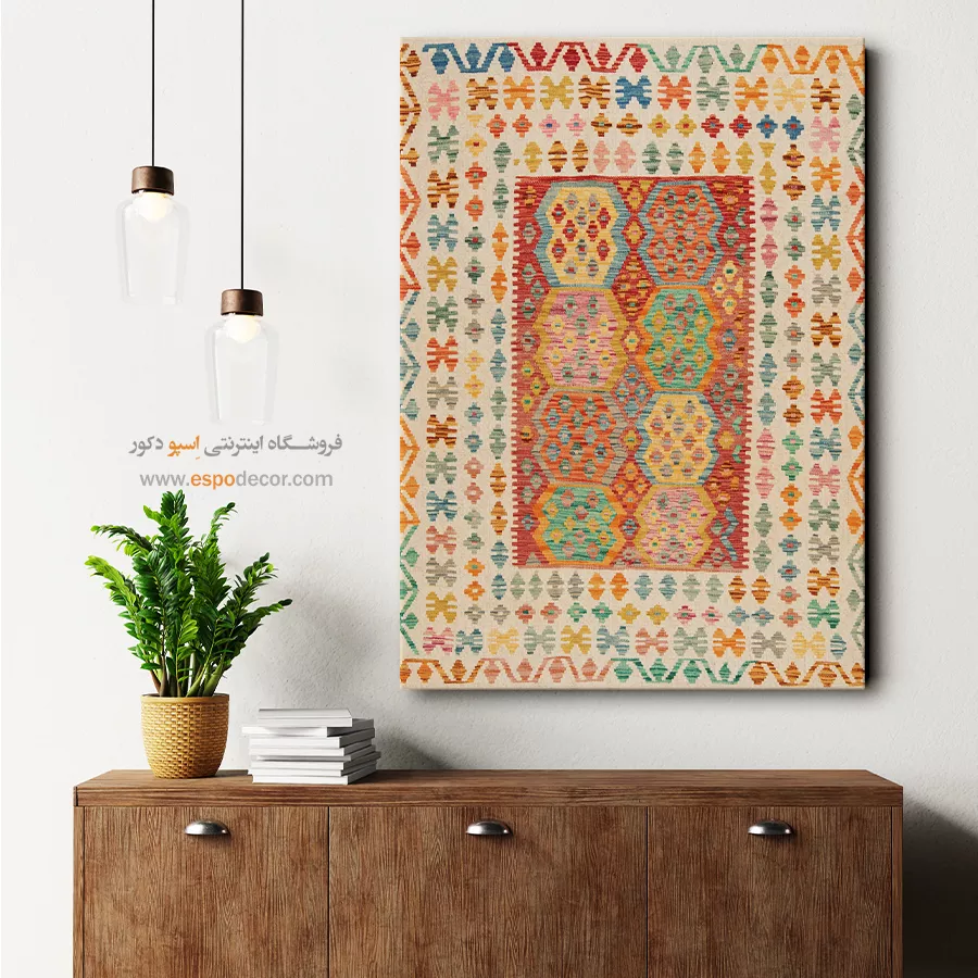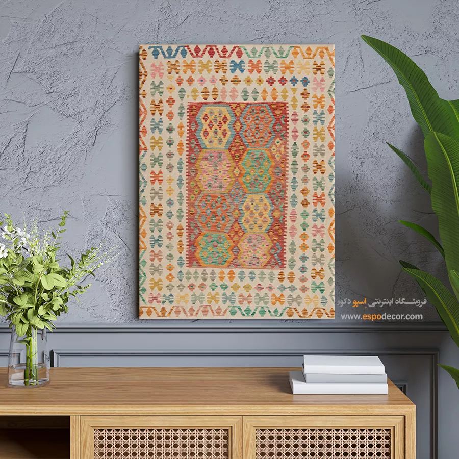 تابلوی دکوراتیو با طرح گلیم افغان، تلفیقی بینظیر از هنر اصیل شرقی و طراحی مدرن است. این تابلو با الهام از نقشونگارهای سنتی گلیمهای افغانستان، حس گرما، صمیمیت و اصالت را به فضای خانه یا محل کار شما میآورد و انتخابی منحصربهفرد برای دوستداران فرهنگ و هنر شرقی است.