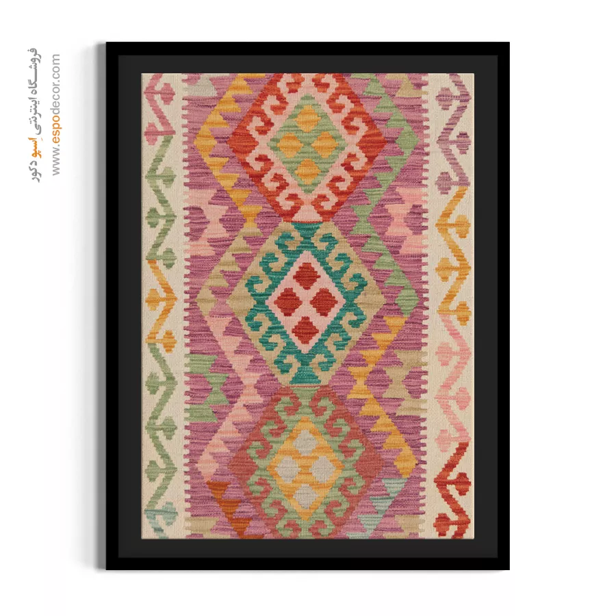 تابلوی گلیم افغان، فراتر از یک عنصر تزئینی ساده است؛ این اثر هنری، داستانی از فرهنگ و سنت‌های کهن افغانستان را روایت می‌کند. با الهام از نقوش هندسی و رنگ‌های گرم گلیم‌های دست‌بافت افغان، این تابلو حال و هوایی متفاوت به دکوراسیون شما می‌بخشد و جلوه‌ای منحصر‌به‌فرد ایجاد می‌کند. رنگ‌های به‌کاررفته در این تابلو، عموماً از پالت‌های خاکی، آجری، لاجوردی و زرشکی انتخاب شده‌اند که بافت طبیعی گلیم را به‌خوبی بازتاب می‌دهند. این طیف رنگی به‌راحتی با سبک‌های مختلف دکوراسیون داخلی مانند بوهو، مینیمال، سنتی یا حتی صنعتی هماهنگ می‌شود. طرح گلیم در این تابلو با دقت و وضوح بالا چاپ شده بر روی متریالی با کیفیت بوم. استفاده از قاب‌های مدرن یا کلاسیک بنا به انتخاب شما، امکان هماهنگ‌سازی تابلو با فضای داخلی را فراهم می‌کند. کیفیت چاپ و مواد اولیه تضمین‌کننده دوام رنگ و ماندگاری بالای تصویر است. این تابلو نه تنها یک انتخاب زیباشناسانه برای فضای نشیمن، اتاق خواب یا محل کار است، بلکه می‌تواند به‌عنوان هدیه‌ای خاص برای علاقه‌مندان به هنرهای شرقی نیز در نظر گرفته شود. تابلوی گلیم افغان، پلی میان گذشته و حال است؛ جایی که اصالت با خلاقیت معاصر گره خورده است. اگر به‌دنبال تزئین فضایی گرم، هنری و متفاوت هستید، این تابلو می‌تواند انتخابی هوشمندانه باشد. هر نگاه به آن، بیننده را به سفری بصری در دل سنت‌های رنگارنگ آسیای میانه می‌برد. با انتخاب این تابلو، بخشی از روح فرهنگی گلیم‌های افغان را به فضای زندگی خود دعوت کنید.