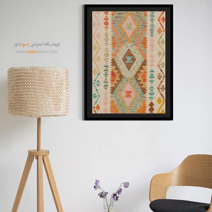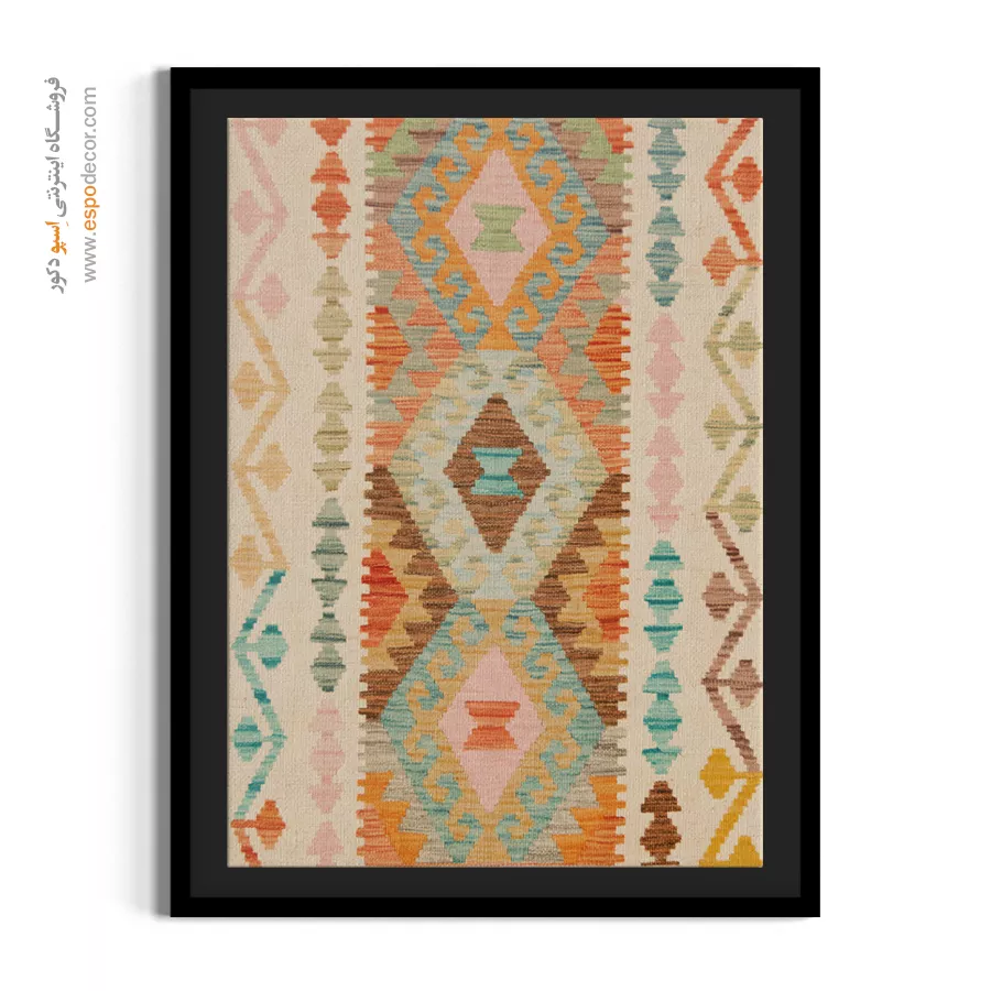 تابلوی دکوراتیو با طرح گلیم افغان، تلفیقی بینظیر از هنر اصیل شرقی و طراحی مدرن است. این تابلو با الهام از نقشونگارهای سنتی گلیمهای افغانستان، حس گرما، صمیمیت و اصالت را به فضای خانه یا محل کار شما میآورد و انتخابی منحصربهفرد برای دوستداران فرهنگ و هنر شرقی است.