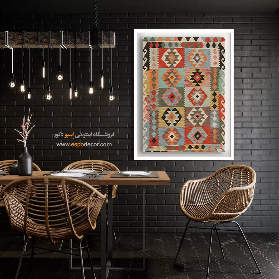 تابلوی دکوراتیو با طرح گلیم افغان، تلفیقی بینظیر از هنر اصیل شرقی و طراحی مدرن است. این تابلو با الهام از نقشونگارهای سنتی گلیمهای افغانستان، حس گرما، صمیمیت و اصالت را به فضای خانه یا محل کار شما میآورد و انتخابی منحصربهفرد برای دوستداران فرهنگ و هنر شرقی است.