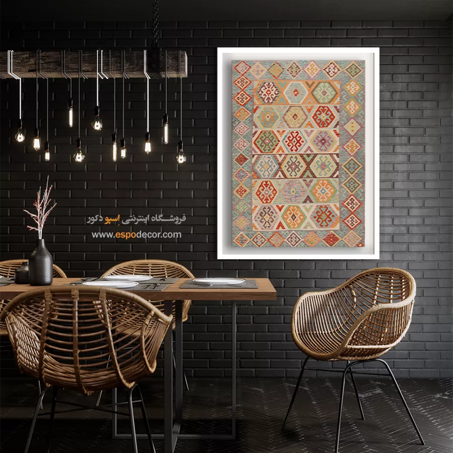 تابلوی دکوراتیو با طرح گلیم افغان، تلفیقی بینظیر از هنر اصیل شرقی و طراحی مدرن است. این تابلو با الهام از نقشونگارهای سنتی گلیمهای افغانستان، حس گرما، صمیمیت و اصالت را به فضای خانه یا محل کار شما میآورد و انتخابی منحصربهفرد برای دوستداران فرهنگ و هنر شرقی است.