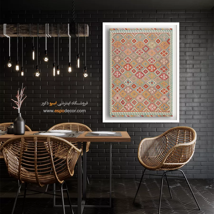 تابلوی گلیم افغان، فراتر از یک عنصر تزئینی ساده است؛ این اثر هنری، داستانی از فرهنگ و سنت‌های کهن افغانستان را روایت می‌کند. با الهام از نقوش هندسی و رنگ‌های گرم گلیم‌های دست‌بافت افغان، این تابلو حال و هوایی متفاوت به دکوراسیون شما می‌بخشد و جلوه‌ای منحصر‌به‌فرد ایجاد می‌کند. رنگ‌های به‌کاررفته در این تابلو، عموماً از پالت‌های خاکی، آجری، لاجوردی و زرشکی انتخاب شده‌اند که بافت طبیعی گلیم را به‌خوبی بازتاب می‌دهند. این طیف رنگی به‌راحتی با سبک‌های مختلف دکوراسیون داخلی مانند بوهو، مینیمال، سنتی یا حتی صنعتی هماهنگ می‌شود. طرح گلیم در این تابلو با دقت و وضوح بالا چاپ شده بر روی متریالی با کیفیت بوم. استفاده از قاب‌های مدرن یا کلاسیک بنا به انتخاب شما، امکان هماهنگ‌سازی تابلو با فضای داخلی را فراهم می‌کند. کیفیت چاپ و مواد اولیه تضمین‌کننده دوام رنگ و ماندگاری بالای تصویر است. این تابلو نه تنها یک انتخاب زیباشناسانه برای فضای نشیمن، اتاق خواب یا محل کار است، بلکه می‌تواند به‌عنوان هدیه‌ای خاص برای علاقه‌مندان به هنرهای شرقی نیز در نظر گرفته شود. تابلوی گلیم افغان، پلی میان گذشته و حال است؛ جایی که اصالت با خلاقیت معاصر گره خورده است. اگر به‌دنبال تزئین فضایی گرم، هنری و متفاوت هستید، این تابلو می‌تواند انتخابی هوشمندانه باشد. هر نگاه به آن، بیننده را به سفری بصری در دل سنت‌های رنگارنگ آسیای میانه می‌برد. با انتخاب این تابلو، بخشی از روح فرهنگی گلیم‌های افغان را به فضای زندگی خود دعوت کنید.
