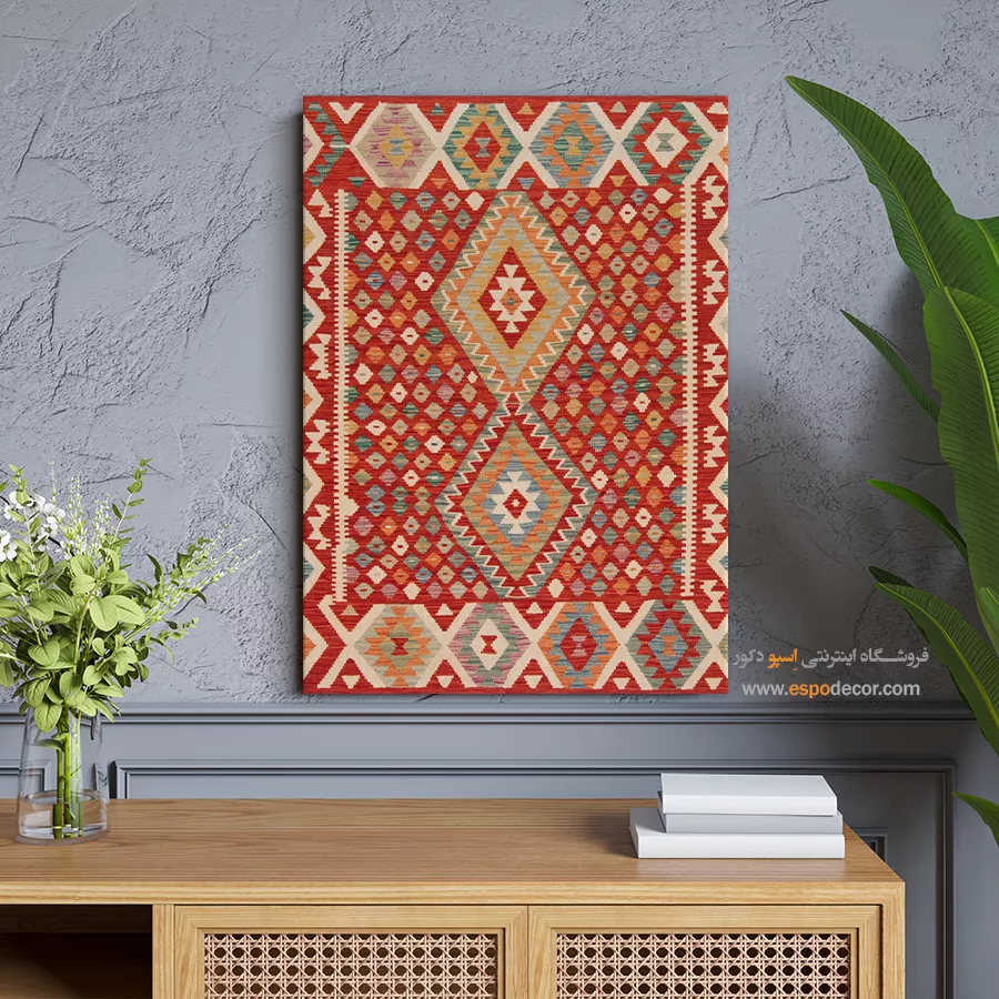 تابلوی دکوراتیو با طرح گلیم افغان، تلفیقی بینظیر از هنر اصیل شرقی و طراحی مدرن است. این تابلو با الهام از نقشونگارهای سنتی گلیمهای افغانستان، حس گرما، صمیمیت و اصالت را به فضای خانه یا محل کار شما میآورد و انتخابی منحصربهفرد برای دوستداران فرهنگ و هنر شرقی است.