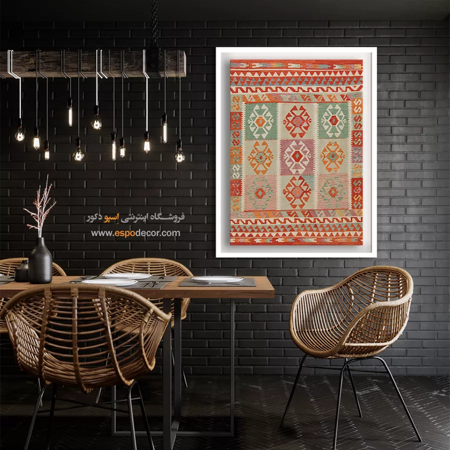 تابلوی دکوراتیو با طرح گلیم افغان، تلفیقی بینظیر از هنر اصیل شرقی و طراحی مدرن است. این تابلو با الهام از نقشونگارهای سنتی گلیمهای افغانستان، حس گرما، صمیمیت و اصالت را به فضای خانه یا محل کار شما میآورد و انتخابی منحصربهفرد برای دوستداران فرهنگ و هنر شرقی است.