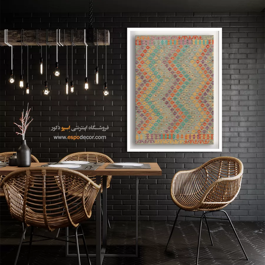 تابلوی دکوراتیو با طرح گلیم افغان، تلفیقی بینظیر از هنر اصیل شرقی و طراحی مدرن است. این تابلو با الهام از نقشونگارهای سنتی گلیمهای افغانستان، حس گرما، صمیمیت و اصالت را به فضای خانه یا محل کار شما میآورد و انتخابی منحصربهفرد برای دوستداران فرهنگ و هنر شرقی است.