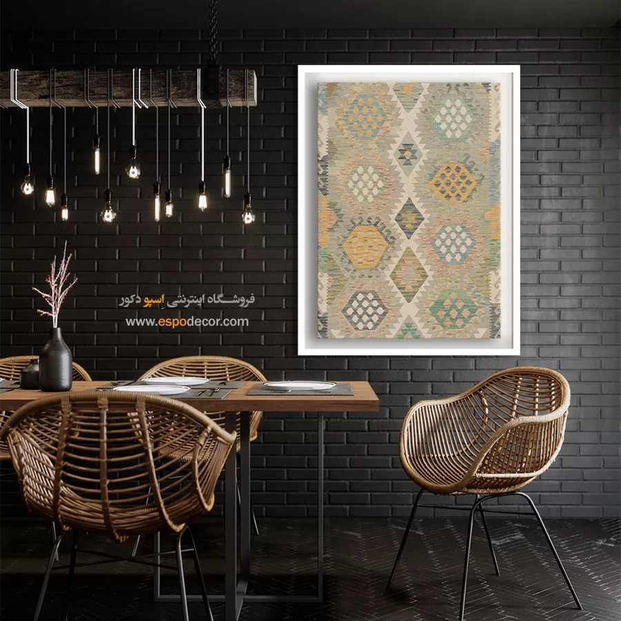تابلوی دکوراتیو با طرح گلیم افغان، تلفیقی بینظیر از هنر اصیل شرقی و طراحی مدرن است. این تابلو با الهام از نقشونگارهای سنتی گلیمهای افغانستان، حس گرما، صمیمیت و اصالت را به فضای خانه یا محل کار شما میآورد و انتخابی منحصربهفرد برای دوستداران فرهنگ و هنر شرقی است.