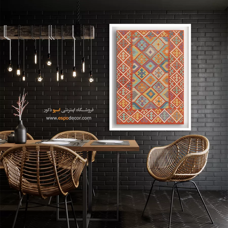تابلوی دکوراتیو با طرح گلیم افغان، تلفیقی بینظیر از هنر اصیل شرقی و طراحی مدرن است. این تابلو با الهام از نقشونگارهای سنتی گلیمهای افغانستان، حس گرما، صمیمیت و اصالت را به فضای خانه یا محل کار شما میآورد و انتخابی منحصربهفرد برای دوستداران فرهنگ و هنر شرقی است.