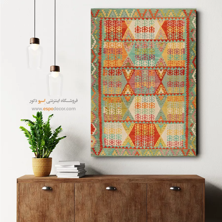 تابلوی گلیم افغان، فراتر از یک عنصر تزئینی ساده است؛ این اثر هنری، داستانی از فرهنگ و سنت‌های کهن افغانستان را روایت می‌کند. با الهام از نقوش هندسی و رنگ‌های گرم گلیم‌های دست‌بافت افغان، این تابلو حال و هوایی متفاوت به دکوراسیون شما می‌بخشد و جلوه‌ای منحصر‌به‌فرد ایجاد می‌کند. رنگ‌های به‌کاررفته در این تابلو، عموماً از پالت‌های خاکی، آجری، لاجوردی و زرشکی انتخاب شده‌اند که بافت طبیعی گلیم را به‌خوبی بازتاب می‌دهند. این طیف رنگی به‌راحتی با سبک‌های مختلف دکوراسیون داخلی مانند بوهو، مینیمال، سنتی یا حتی صنعتی هماهنگ می‌شود. طرح گلیم در این تابلو با دقت و وضوح بالا چاپ شده بر روی متریالی با کیفیت بوم. استفاده از قاب‌های مدرن یا کلاسیک بنا به انتخاب شما، امکان هماهنگ‌سازی تابلو با فضای داخلی را فراهم می‌کند. کیفیت چاپ و مواد اولیه تضمین‌کننده دوام رنگ و ماندگاری بالای تصویر است. این تابلو نه تنها یک انتخاب زیباشناسانه برای فضای نشیمن، اتاق خواب یا محل کار است، بلکه می‌تواند به‌عنوان هدیه‌ای خاص برای علاقه‌مندان به هنرهای شرقی نیز در نظر گرفته شود. تابلوی گلیم افغان، پلی میان گذشته و حال است؛ جایی که اصالت با خلاقیت معاصر گره خورده است. اگر به‌دنبال تزئین فضایی گرم، هنری و متفاوت هستید، این تابلو می‌تواند انتخابی هوشمندانه باشد. هر نگاه به آن، بیننده را به سفری بصری در دل سنت‌های رنگارنگ آسیای میانه می‌برد. با انتخاب این تابلو، بخشی از روح فرهنگی گلیم‌های افغان را به فضای زندگی خود دعوت کنید.