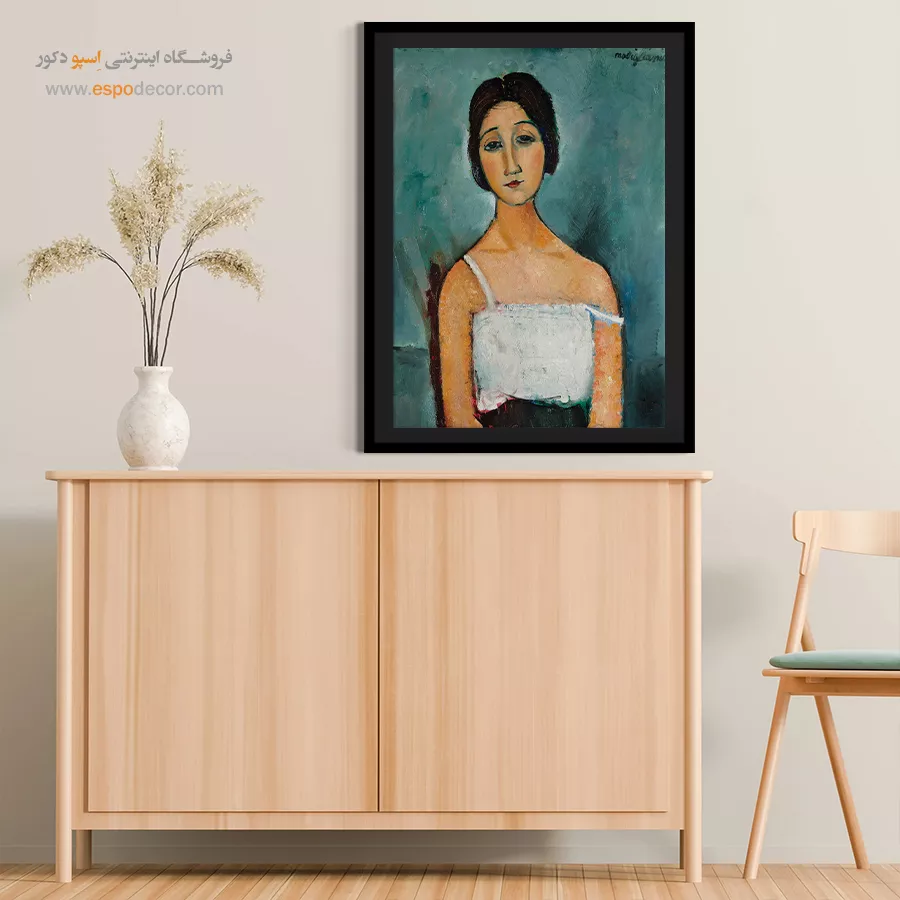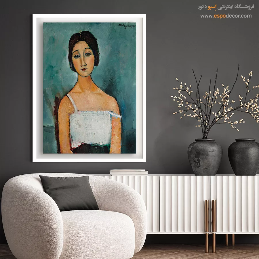 - استفاده از تابلویی با رنگ خنثی در پسزمینه: رنگهای سفید، خاکستری یا بژ، در حالی که رنگ اصلی دیوار یا رنگهای جزئی مبلمان و اکسسوریها در طرح آن تکرار شده باشد. این روش تعادل را در فضا تضمین کرده و از شلوغی بصری جلوگیری میکند.