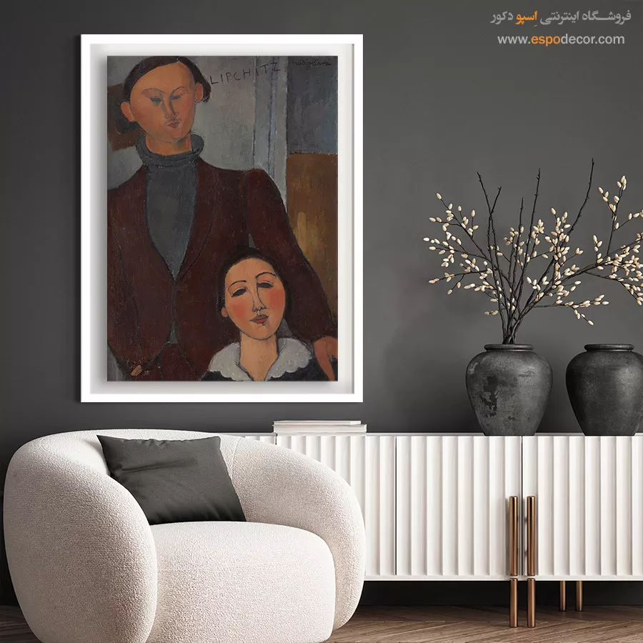 - استفاده از تابلویی با رنگ خنثی در پسزمینه: رنگهای سفید، خاکستری یا بژ، در حالی که رنگ اصلی دیوار یا رنگهای جزئی مبلمان و اکسسوریها در طرح آن تکرار شده باشد. این روش تعادل را در فضا تضمین کرده و از شلوغی بصری جلوگیری میکند.